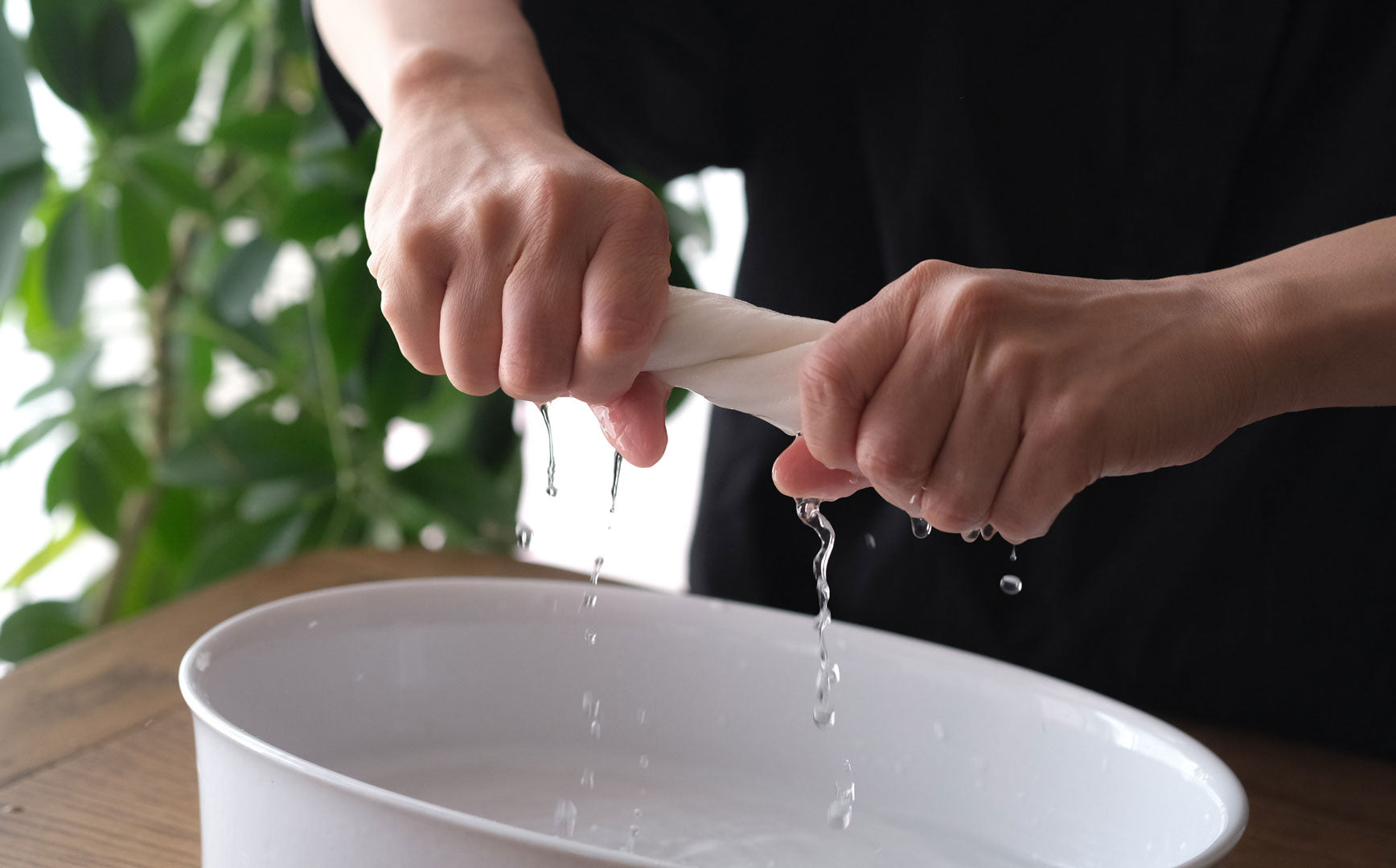 食器や机、手を拭くはもちろん、食材の水分をとる、ぎゅっとしぼる、だしを漉す、蒸す、コーヒーフィルターにもなるし、茶葉をくるんでティーバッグにもなります。シンプルだから、アイディア次第でいろいろなことに使えます。