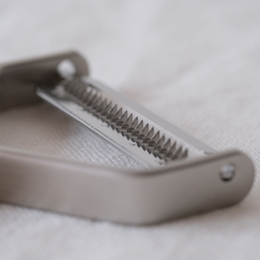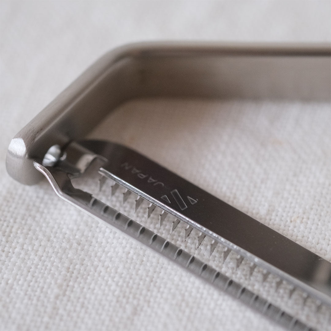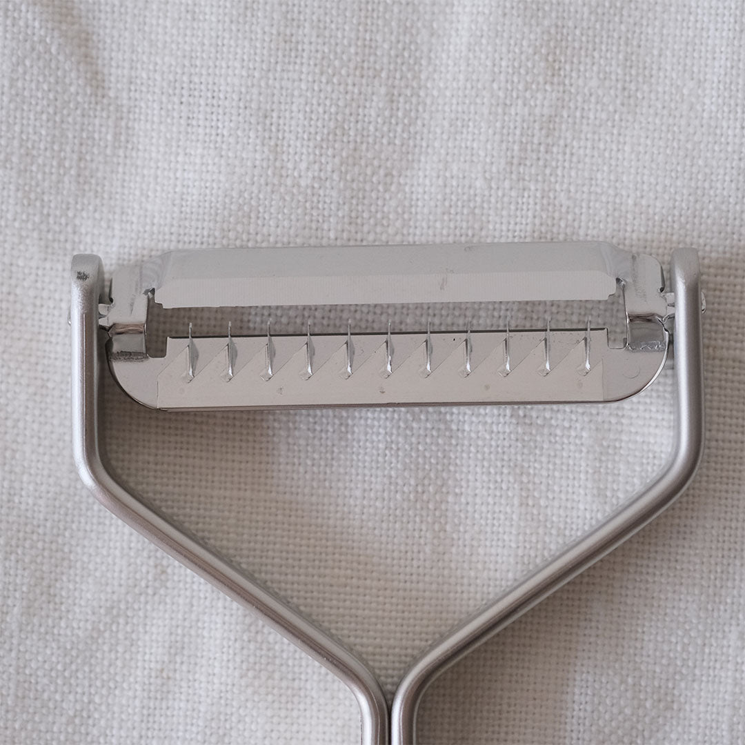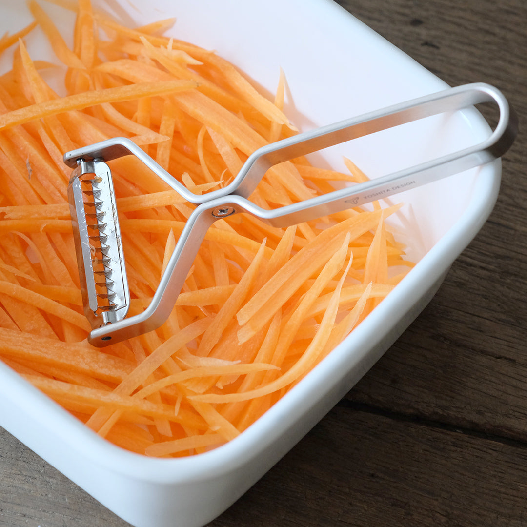 11本の刃で野菜を細長くスライスすることができます。キャロットラペ、きんぴらごぼう、しりしりなどの料理に向いています。使い方はピーラーと同じ。