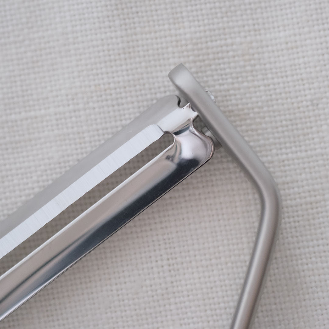 ステンレス製のピーラーは、頑丈で安定感があります。