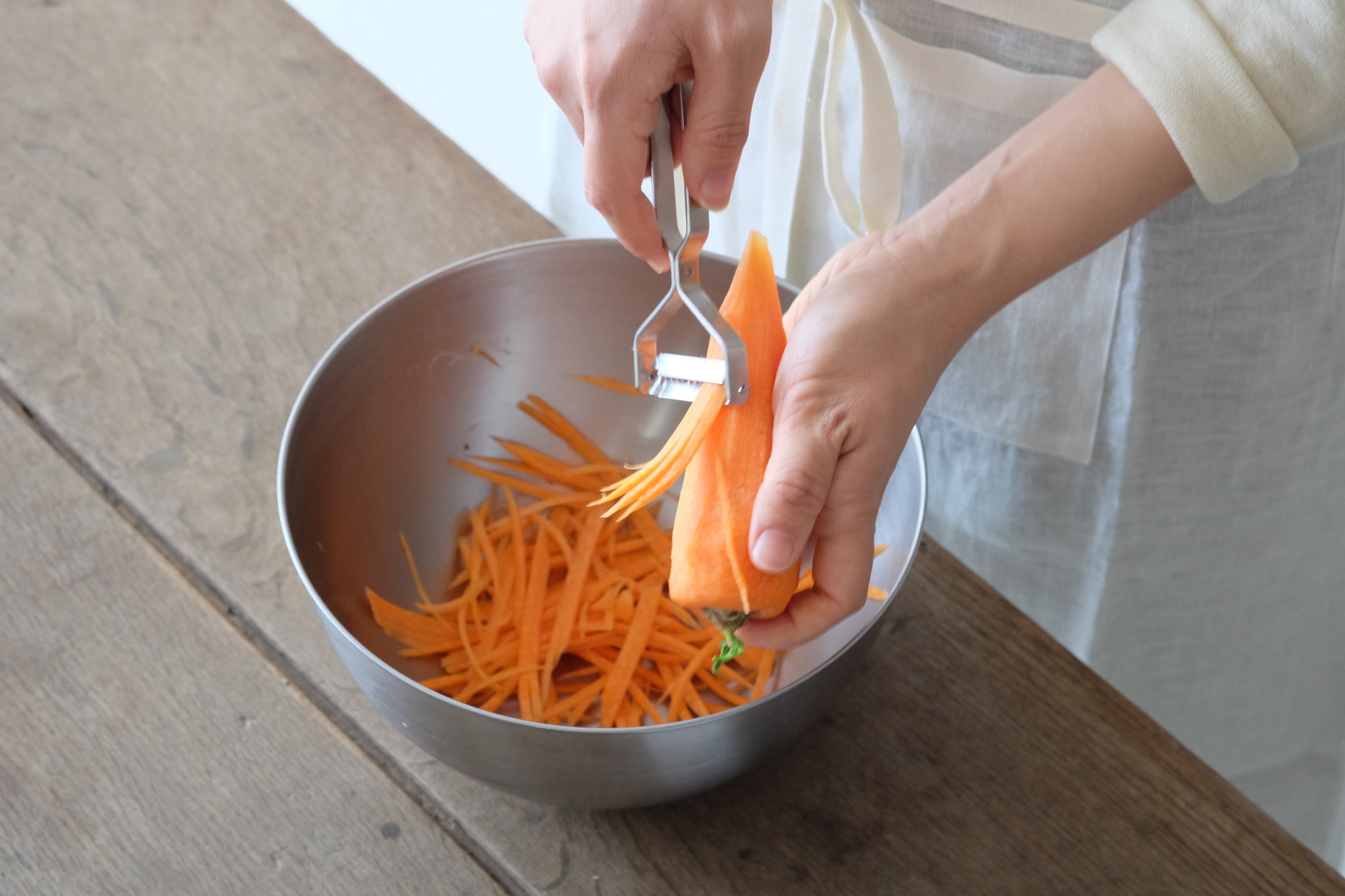 「千切り」はキャロットラぺやにんじんのしりしりなど。どちらもピーラーに合った料理をみつける楽しさもあります。