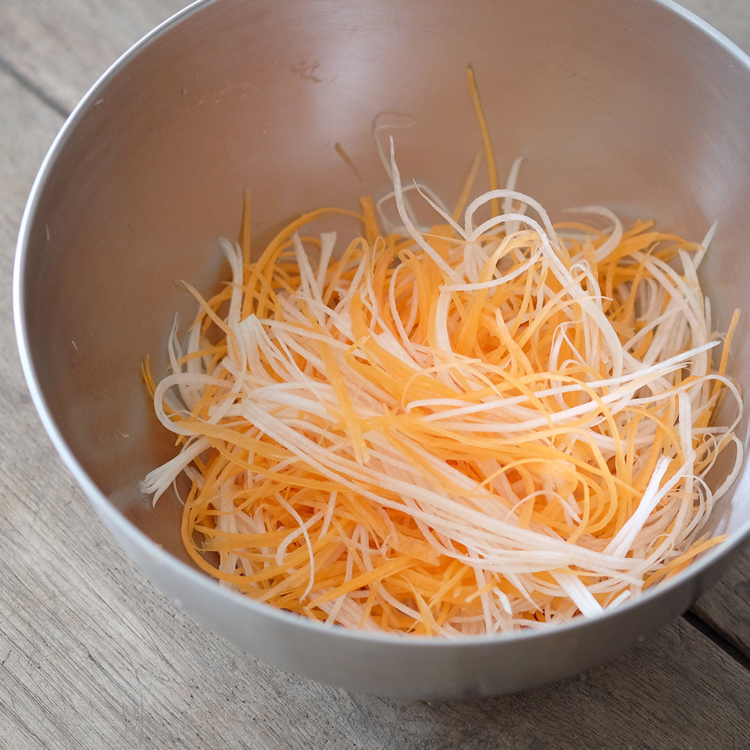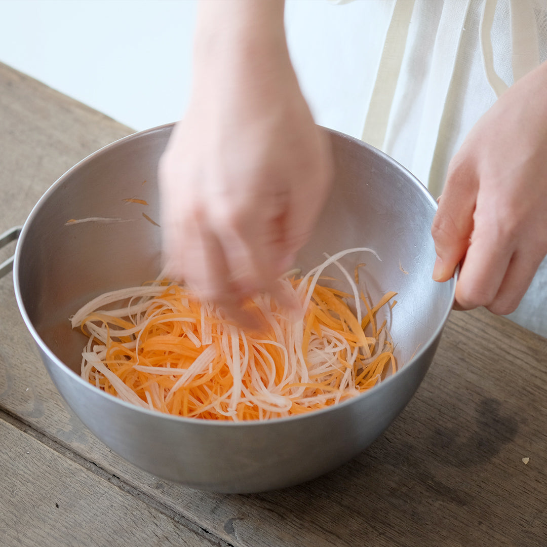 「細千切り」は、大根のつまをつくるのに最適。均一すぎず、歯ごたえも残した絶妙な細さです。