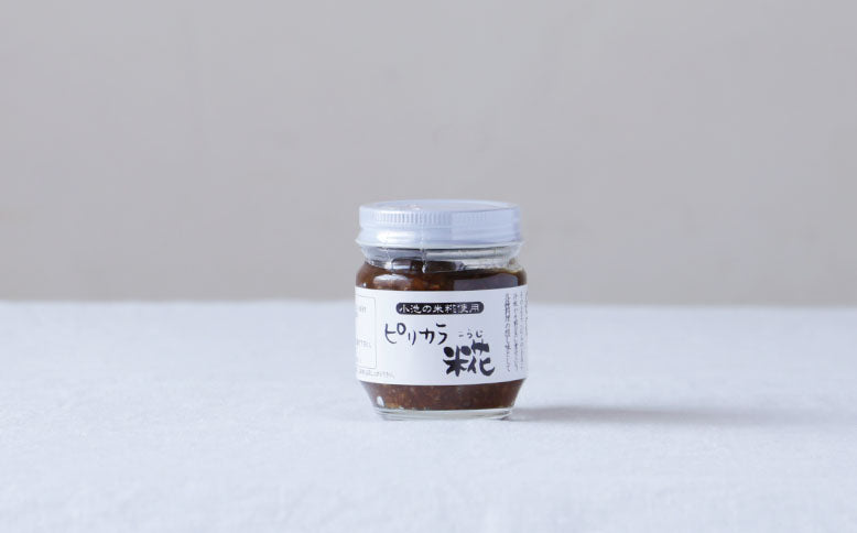 創業明治12年、長野県木曽福島にて130年間変わらない手作業で糀をつくり続ける小池糀店。元気な糀と青唐辛子を醤油と砂糖で甘辛く煮詰めてつくった「ピリカラ糀」は、白いご飯のお供として、豆腐や野菜のかけだれとして使える万能だれです。