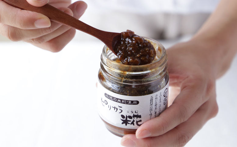 まずは一度、炊き立てのごはんのうえにのせて食べてみてください。糀ならではの自然の甘さと、唐辛子のピリ辛さが絶妙です。