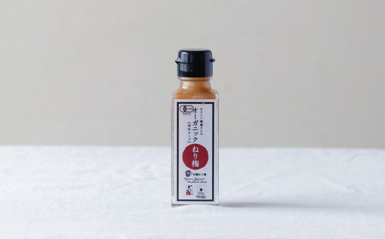 南高梅の産地、和歌山でも数少ない有機栽培の梅づくりに取り組むやさしい梅屋さん。皮ごと安心してたべることができる梅からできた「オーガニックねり梅」をご紹介します。薬味やかくし味にさっと使える液体タイプで、調味料としても味付けの幅を広げてくれる1本です。