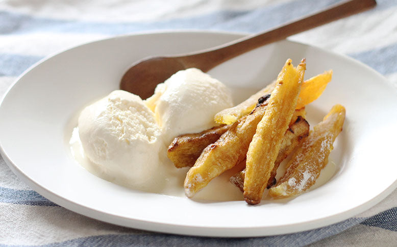 温かいうちに、アイスと合わせて召し上がってください。あっという間にデザートのできあがりです。