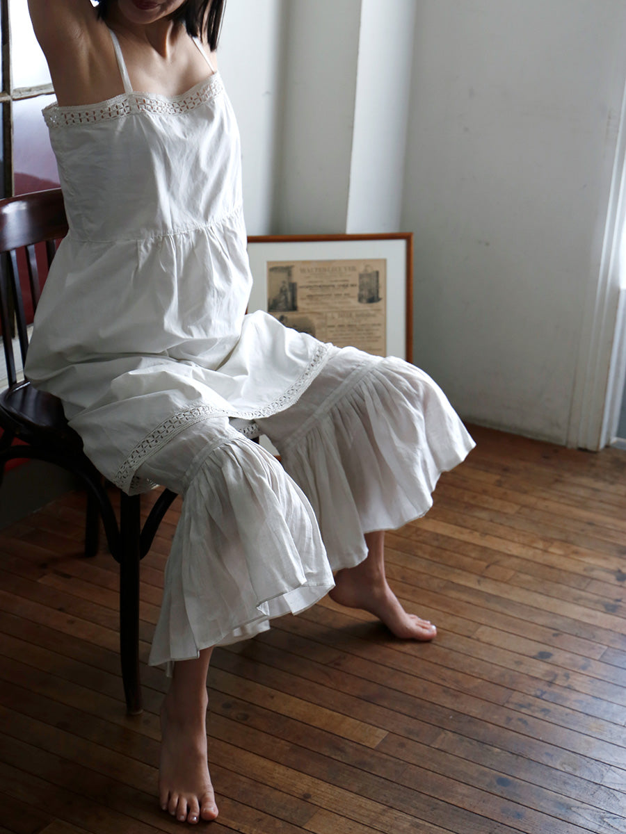 透け防止としての役割だけでなく、裾からすこし覗かせたり、裾にボリュームを出したり、着丈の調整など、着こなしの幅を広げる1枚です。