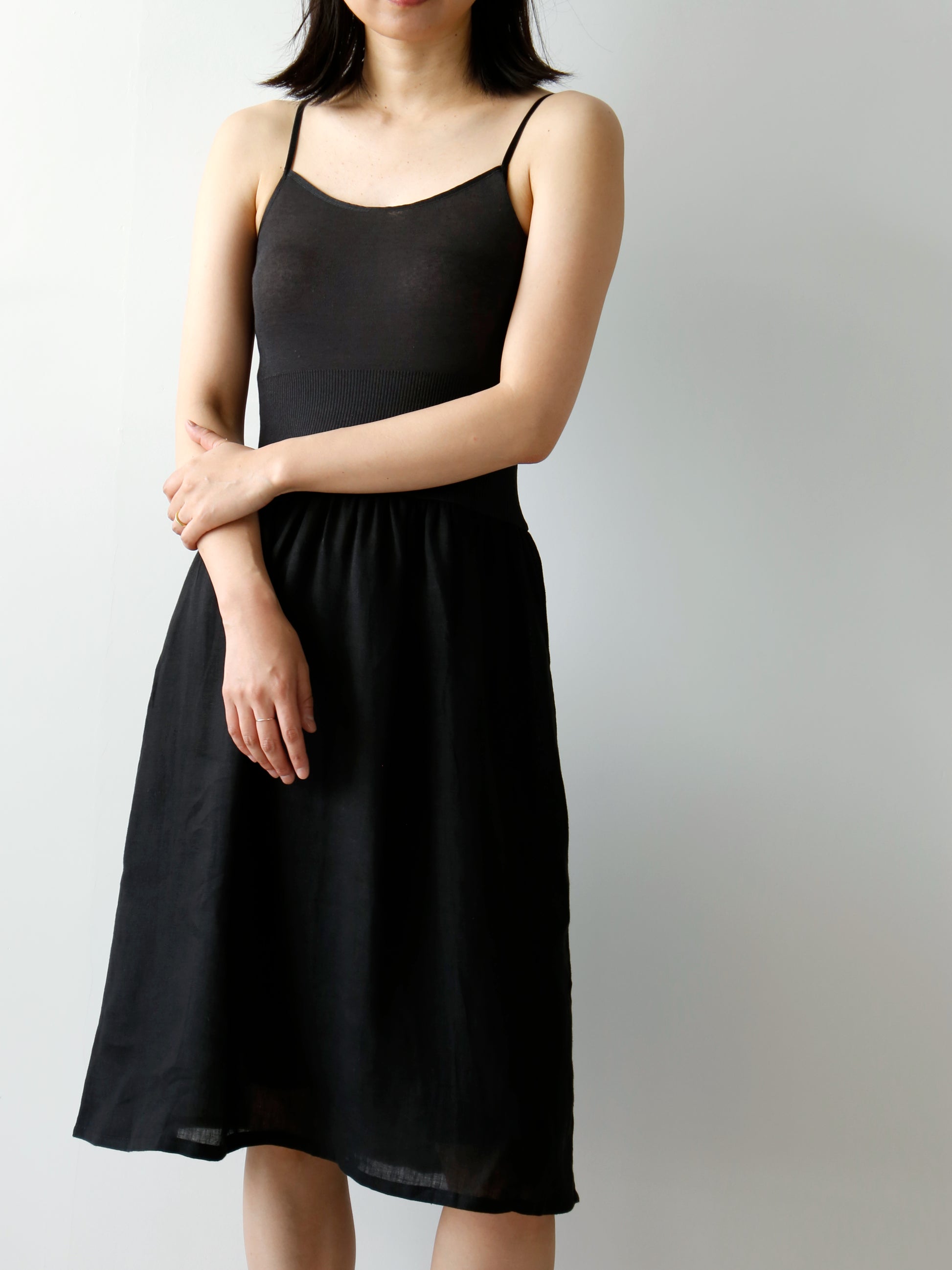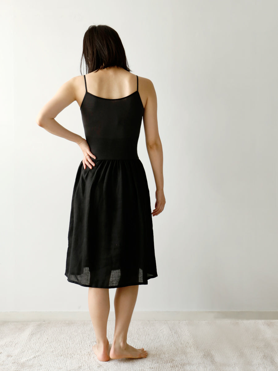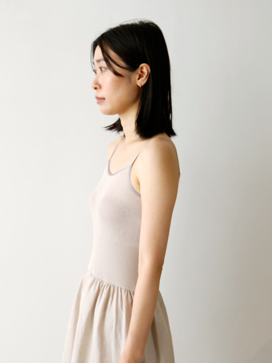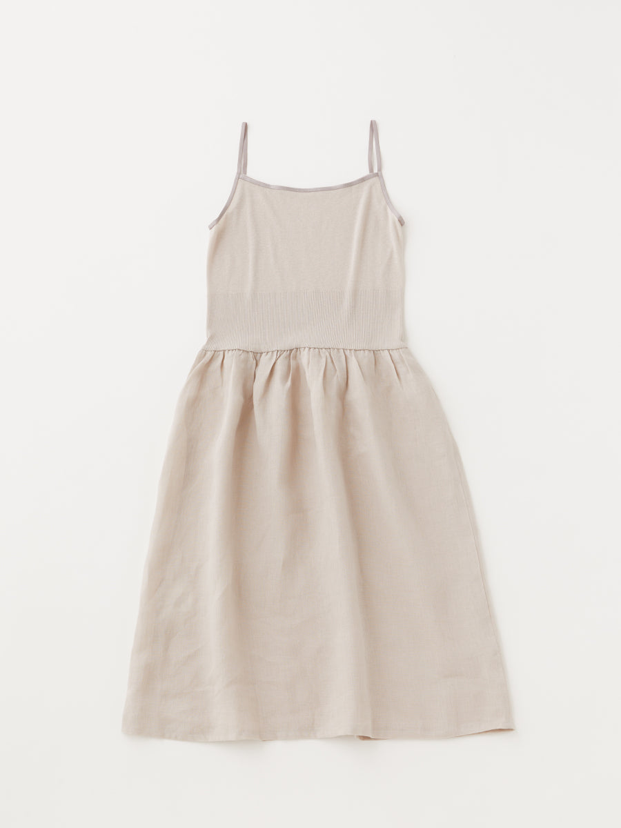 コットンリネンジャージーとリネンスカートのキャミソールワンピース。