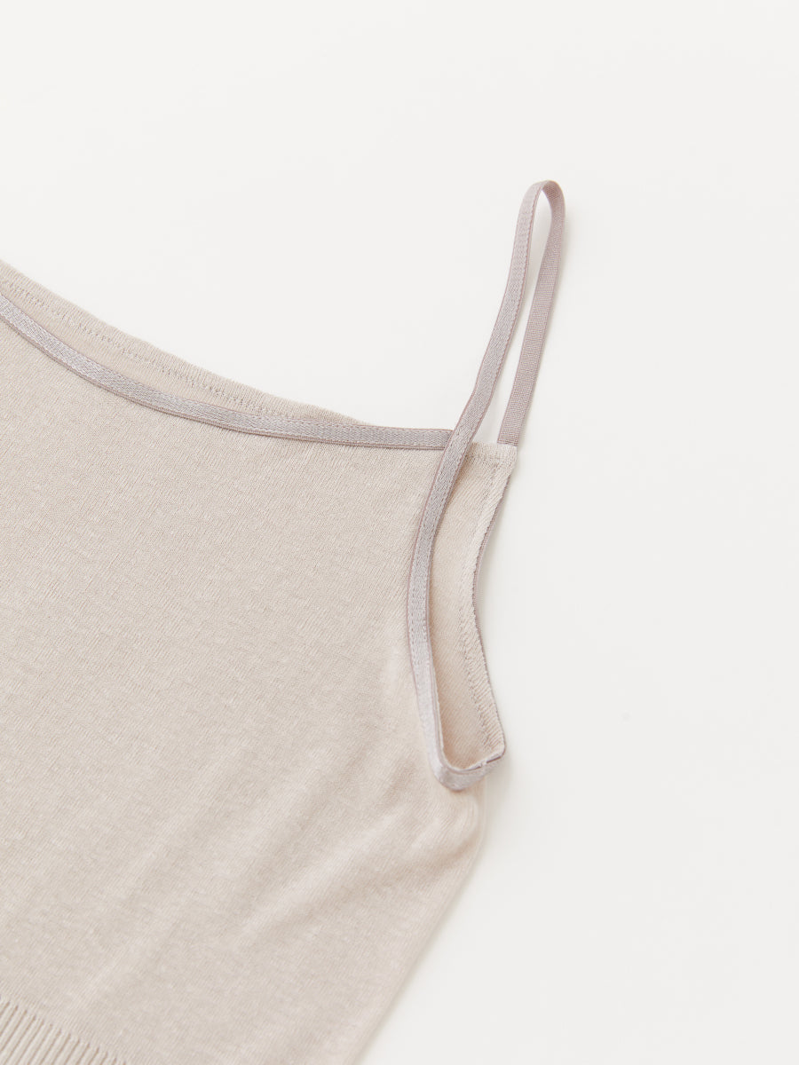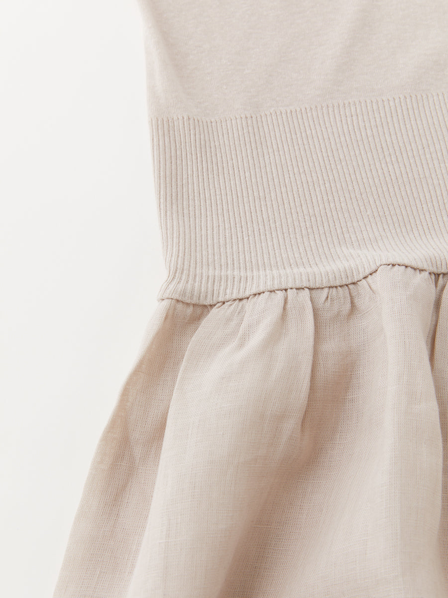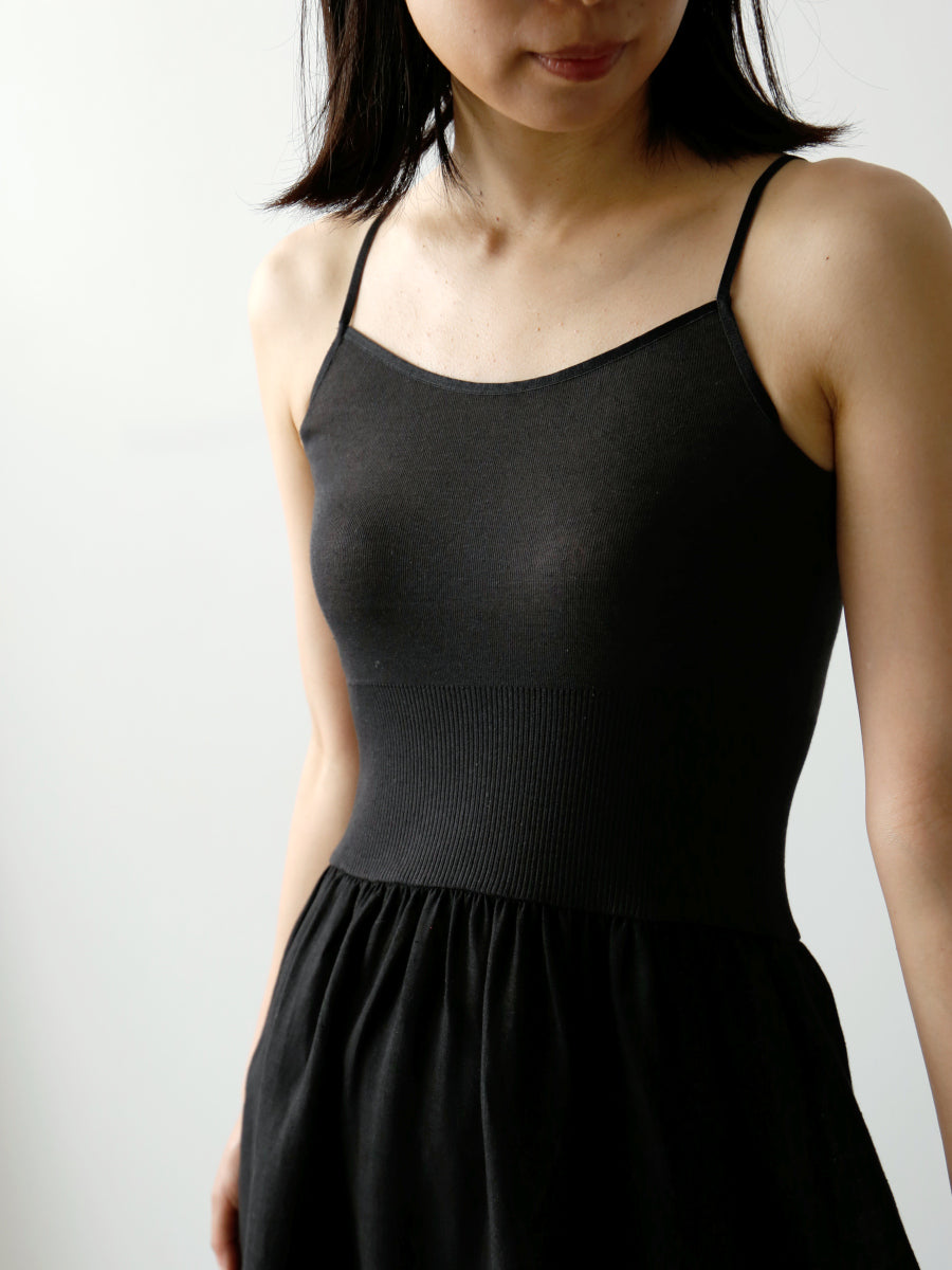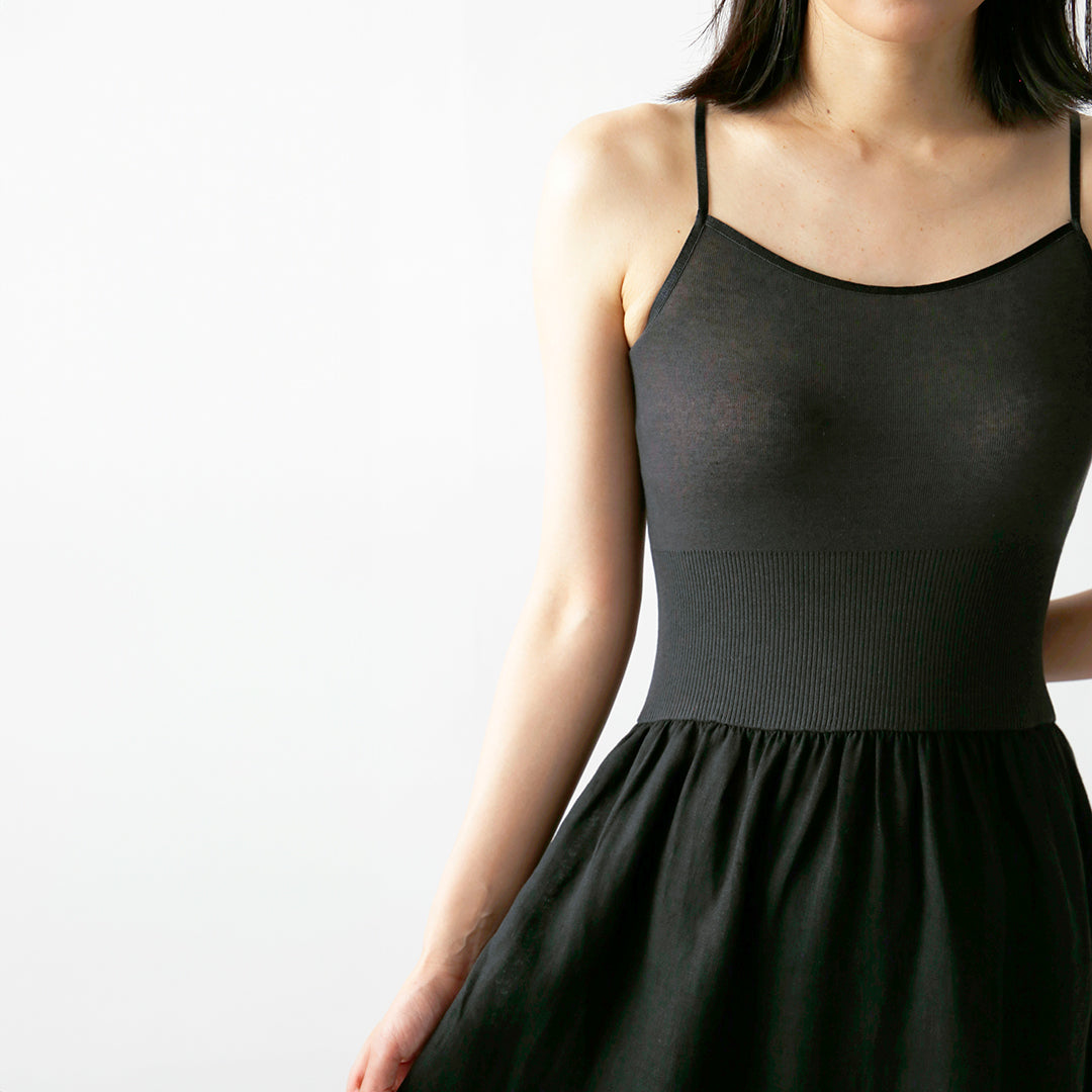 コットンリネンジャージーとリネンスカートのキャミソールワンピース。