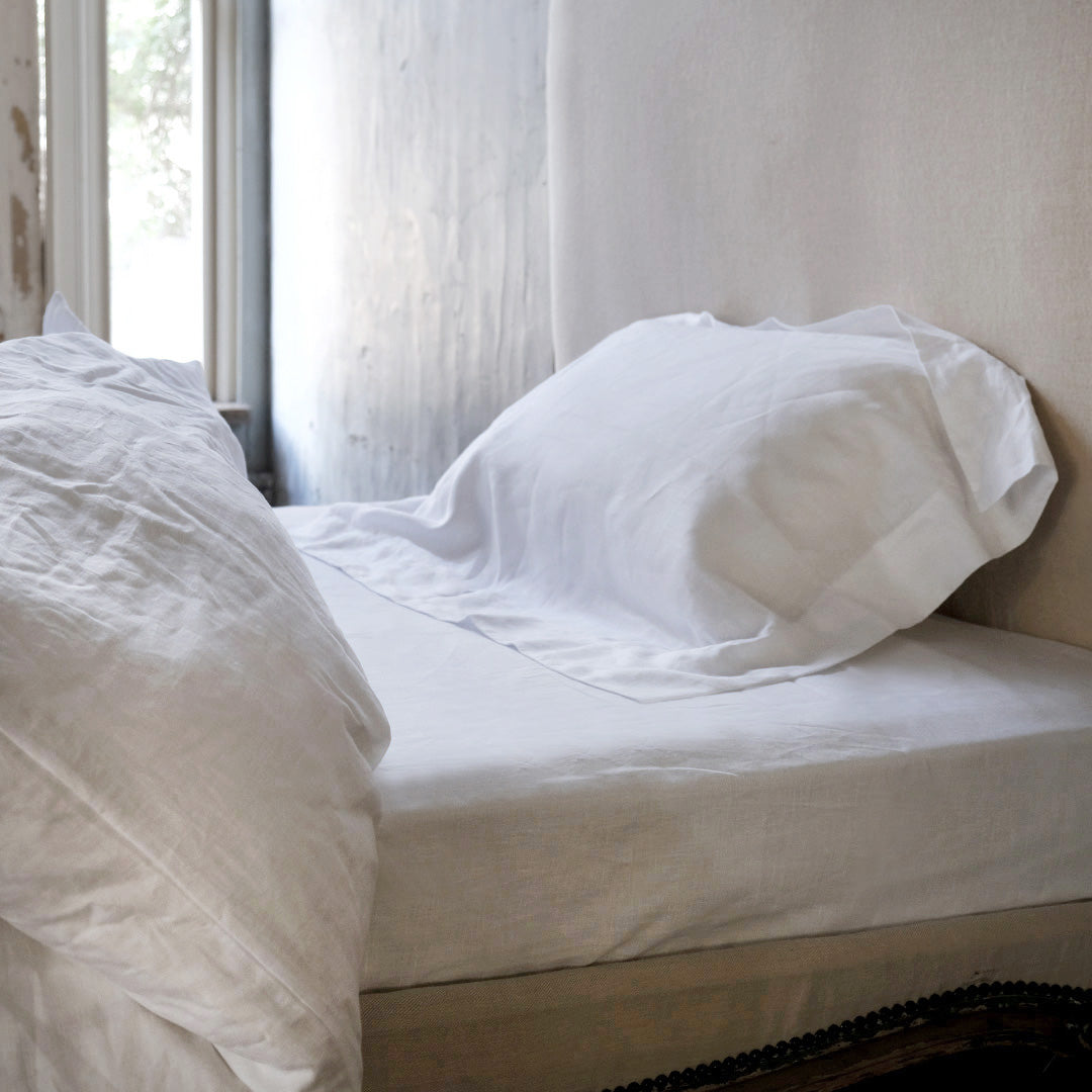 LIBECOの定番ベッドリネン、クラシックスシリーズのフラットシーツ。高密度できめ細やかに織られた生地は、するりとした肌触り。シンプルで合わせやすく、真っ白な清潔感が魅力です。