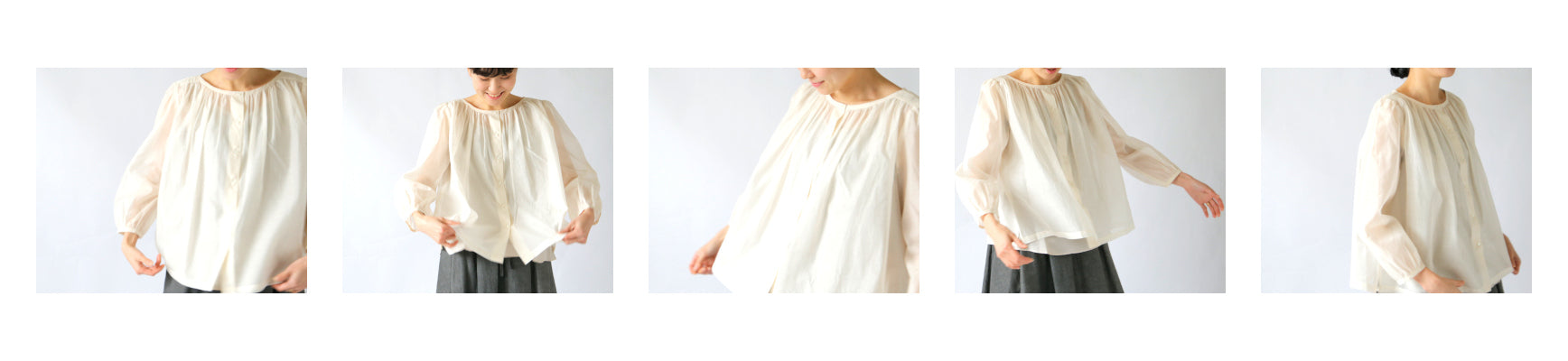 コットンシルクボイルの生地で、リゼッタの定番ギャザーブラウス「ラナ」をつくりました。