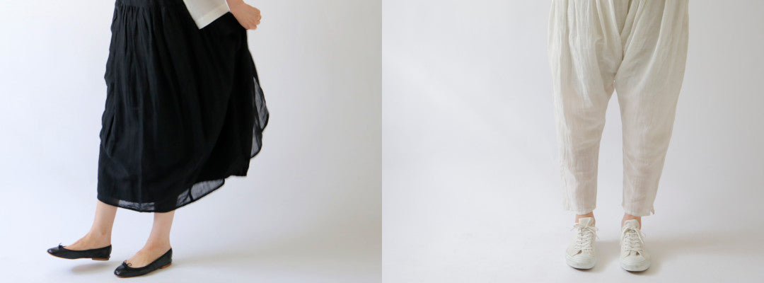 どこかオリエンタルな雰囲気を放つ、とにかく軽くて涼しい、バンブーコットンの洋服たち。