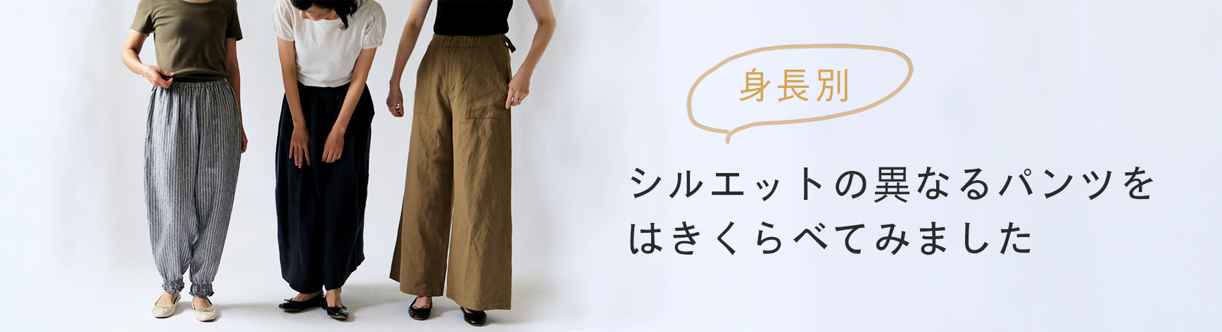 テーパードパンツ、フレアパンツ、ワイドパンツをそれぞれはいてみました。