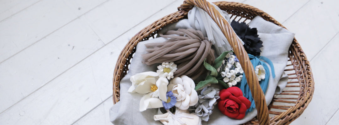 リゼッタのコサージュは日常の装いになじむようにという想いをこめて、