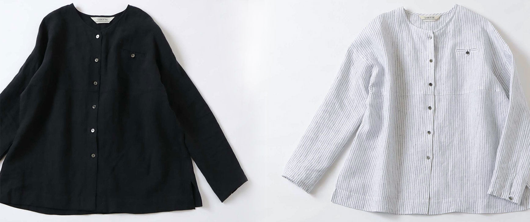 プレーンでマニッシュなデザインのリネンブラウス「ジョス」。