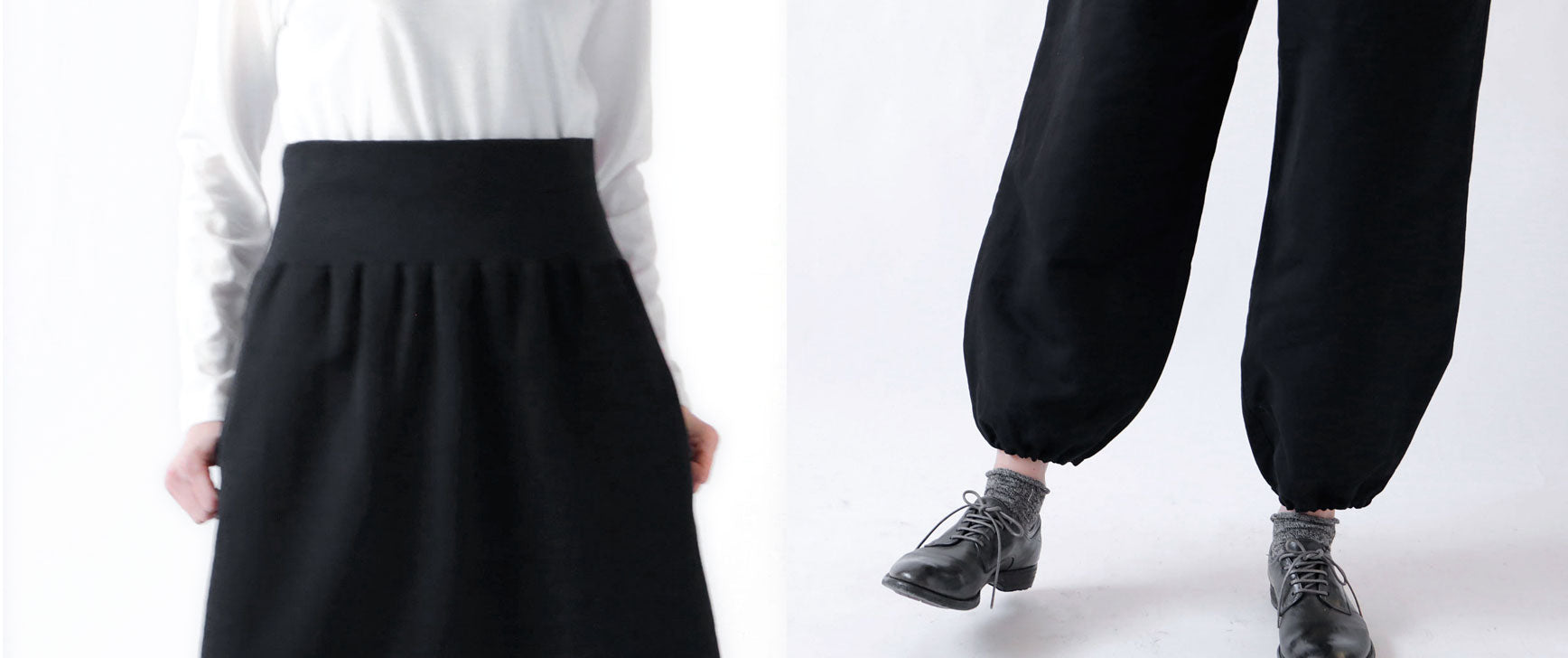 リネンコットン生地で仕立てたスカートとパンツのご紹介です。