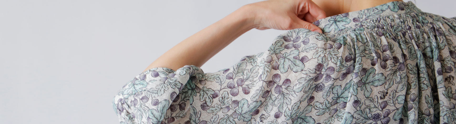 シャリ感のある薄手のベルギーリネンで作ったサロペットスカートやブラウス、日傘などをご紹介します。
