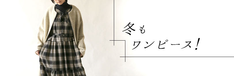 秋には1枚で着ていたワンピース。冬も重ね着しながら着ていきたいですね。
