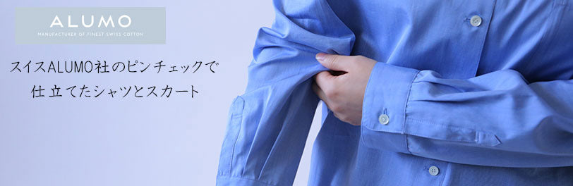 その品質のよさでメンズのオーダーシャツとしてによく使われるALUMO社のコットンで、今春オーバーサイズのシャツとギャザーのスカートをつくりました。