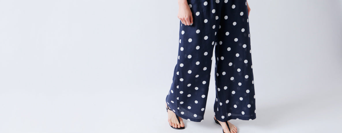 こうしたゆらぎが合わさってできあがった水玉模様のリネン。