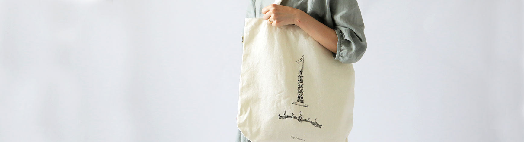 ベルギー製のリネンでつくった、日本橋店の外観をイラストにしたトートバッグ。