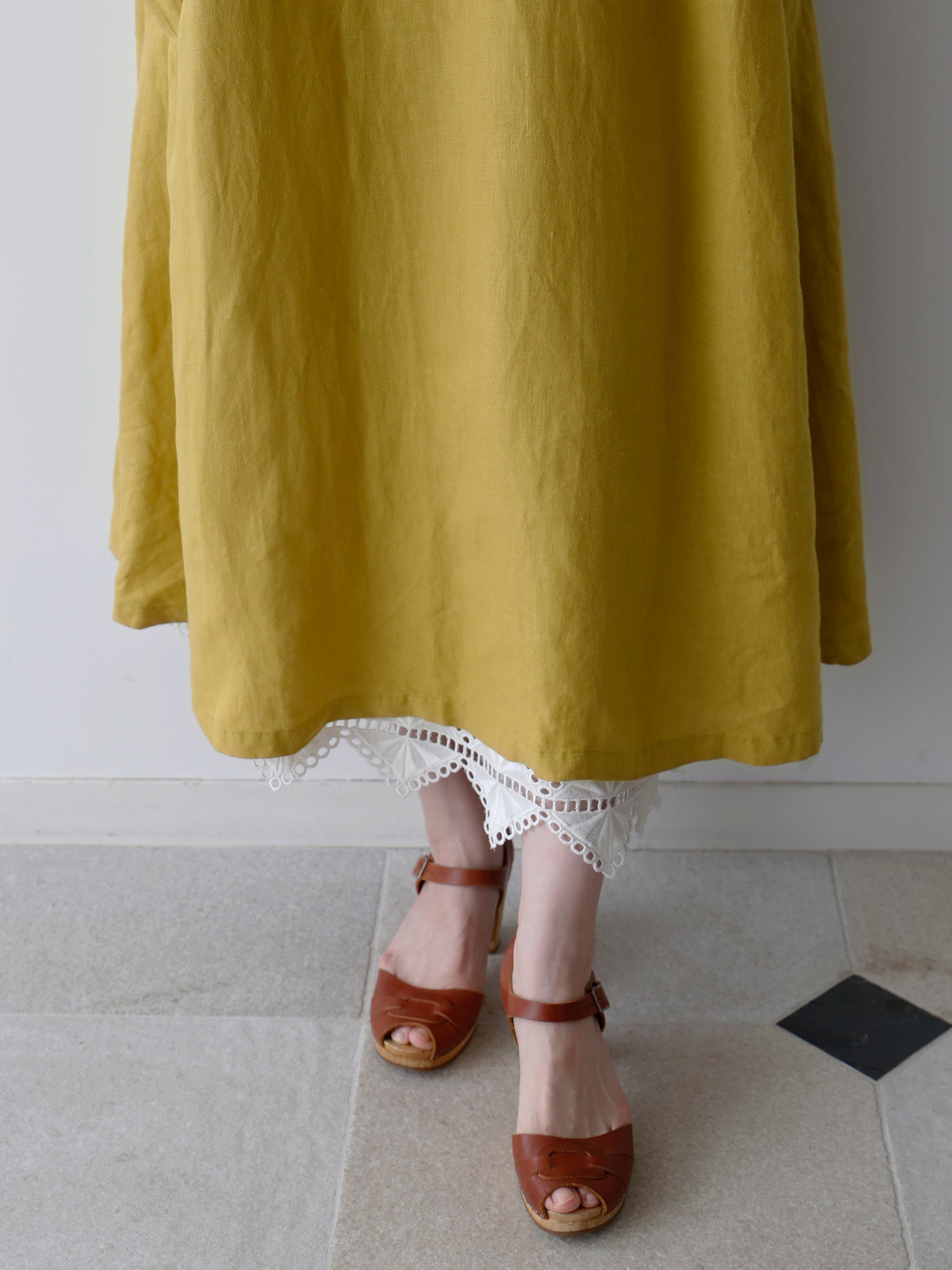 一枚で履くのはもちろんですが、ワンピースの丈を調整したり、スカートの裾から見せるペチコートとしても、着こなしの幅を広げてくれます。▲ワンピース:サラ/ブートンドール[完売]
