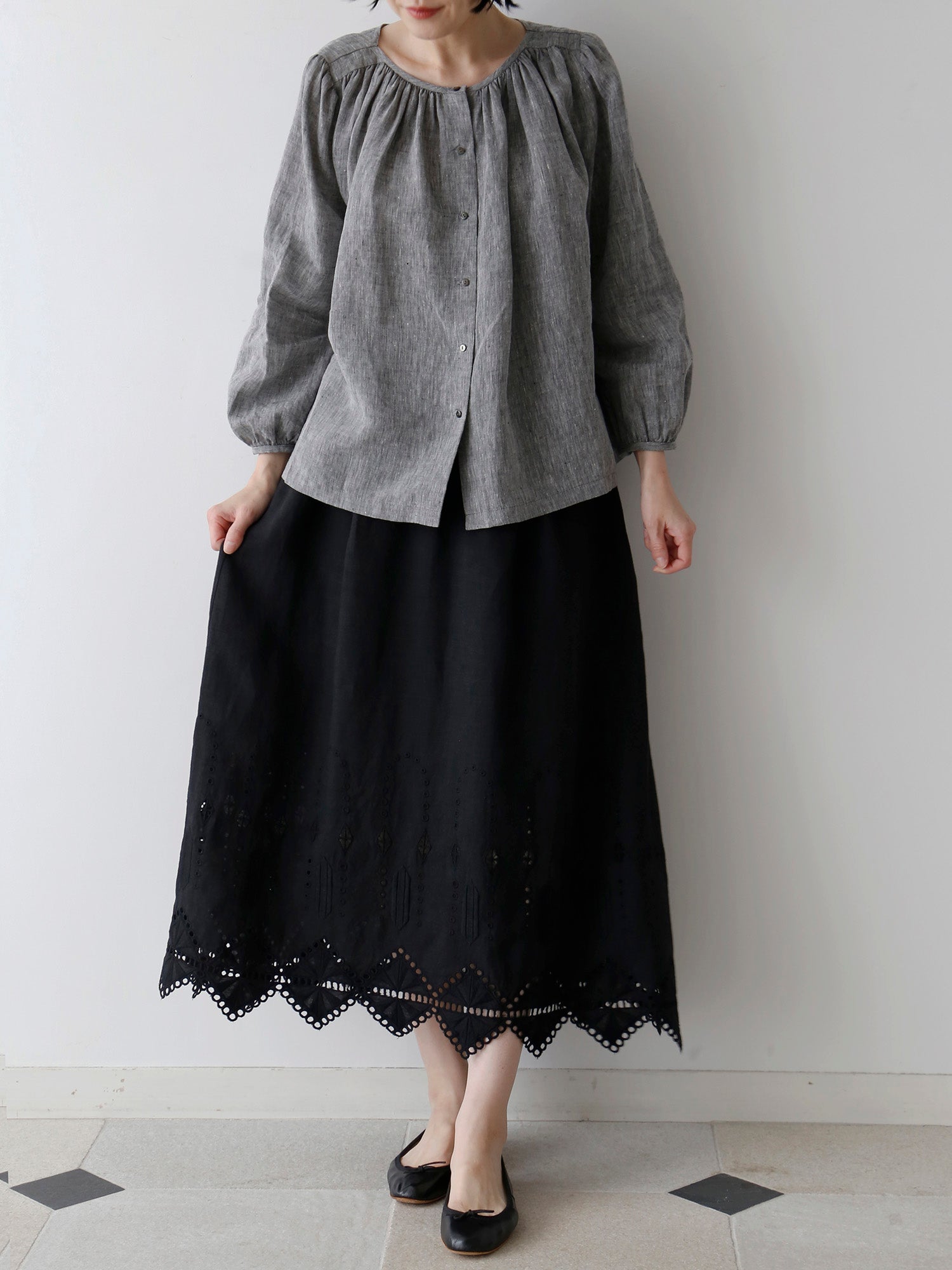 もともとペチコートとしてデザインされたため、あえてポケットを付けず、ペチスカートとして着用した際ももたつきにくいように工夫されています。▲ブラウス:ラナ/ノアールシャンブレー[完売]