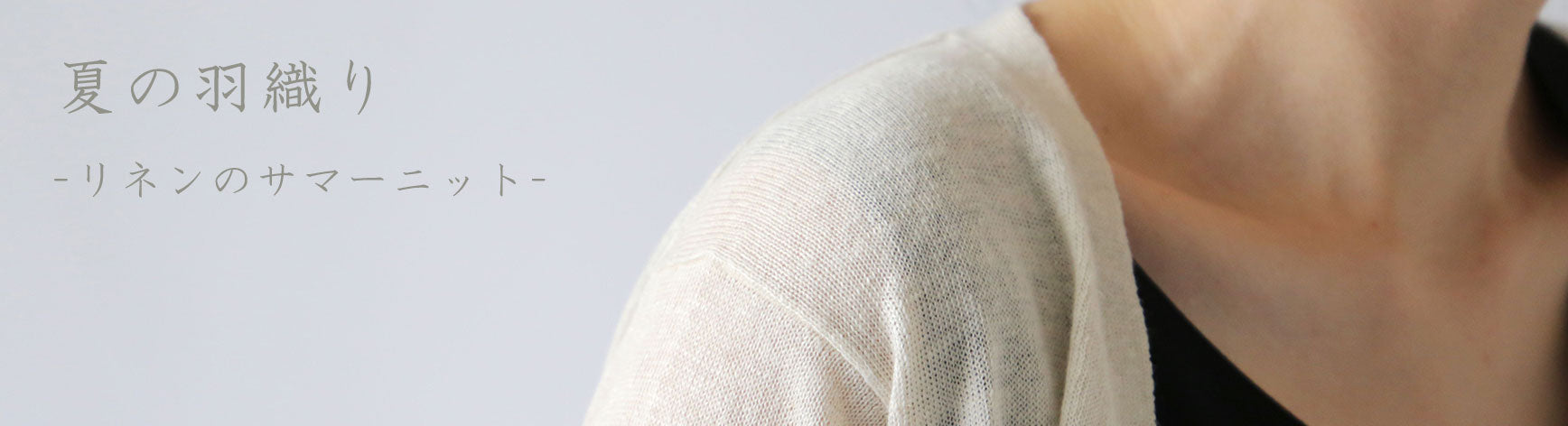 イタリア製のリネン糸で編んだサマーニットのプルオーバーとカーディガンの2型。
