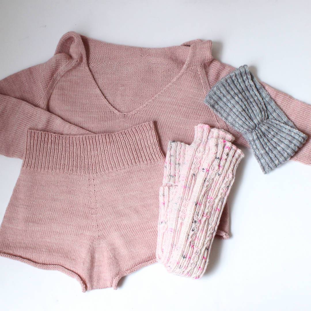 ウエアは棒針編みに慣れている方におすすめ。特殊な技法は写真で解説しています。一方、アクセサリーは気軽に挑戦できるパターンです。