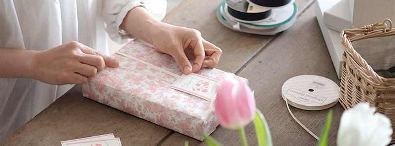 今年も、この期間だけのラッピングをご用意しました。優しいピンクのカーネーションが咲いたタグをつけてお包みします。こちらのページからご希望のラッピングを選んでカートにお入れください。