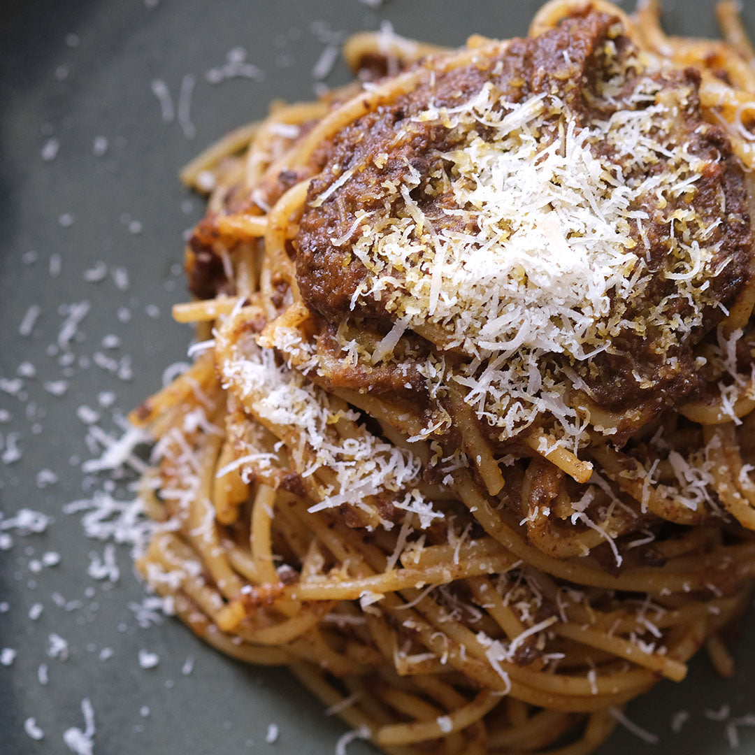 和風キーマカリーは、パスタソースとしても使えます。仕上げにはパルミジャーノレッジャーノをかけてくださいね。かつお粉やみそが入っているから、うまみたっぷりのパルミジャーノは相性のいい組み合わせ。