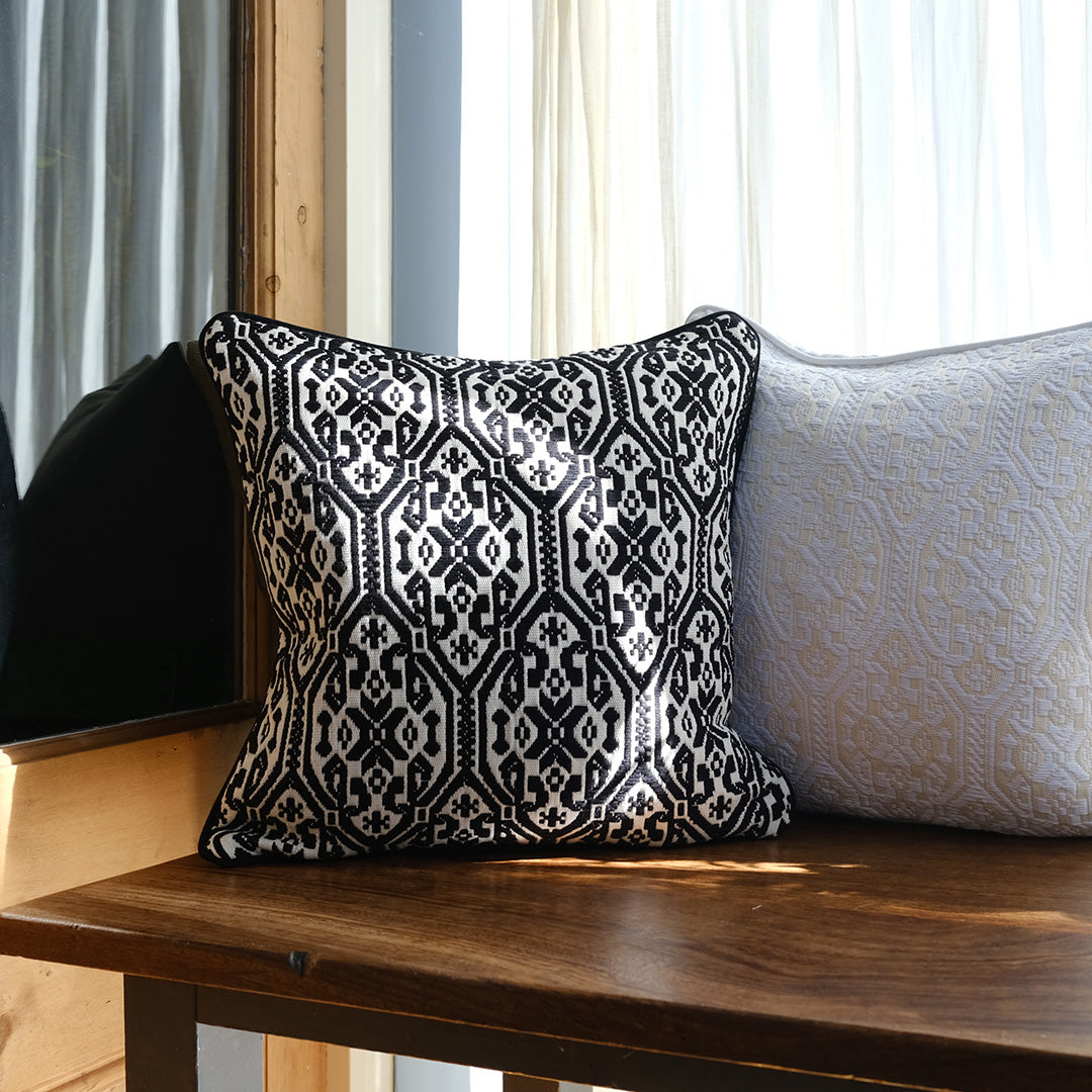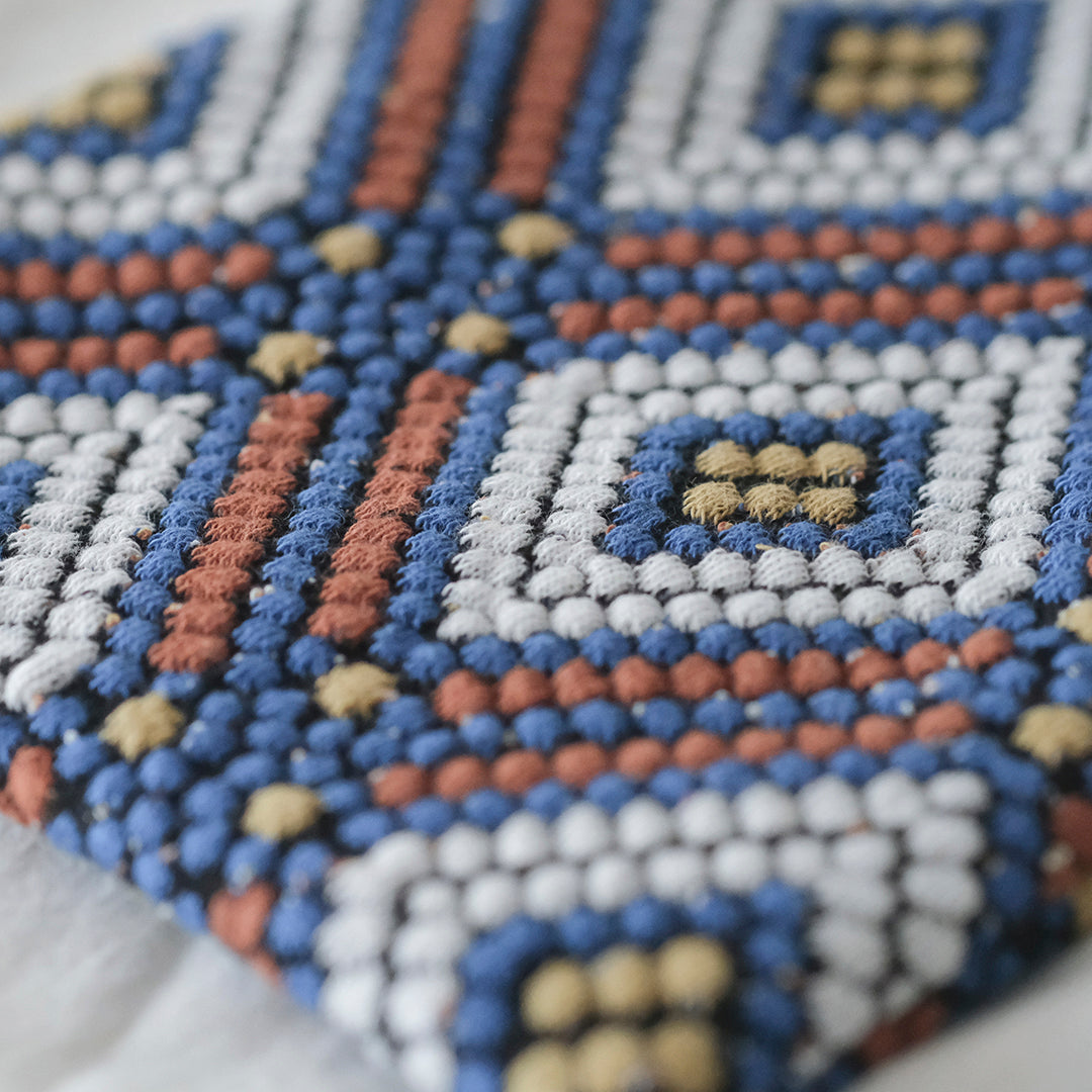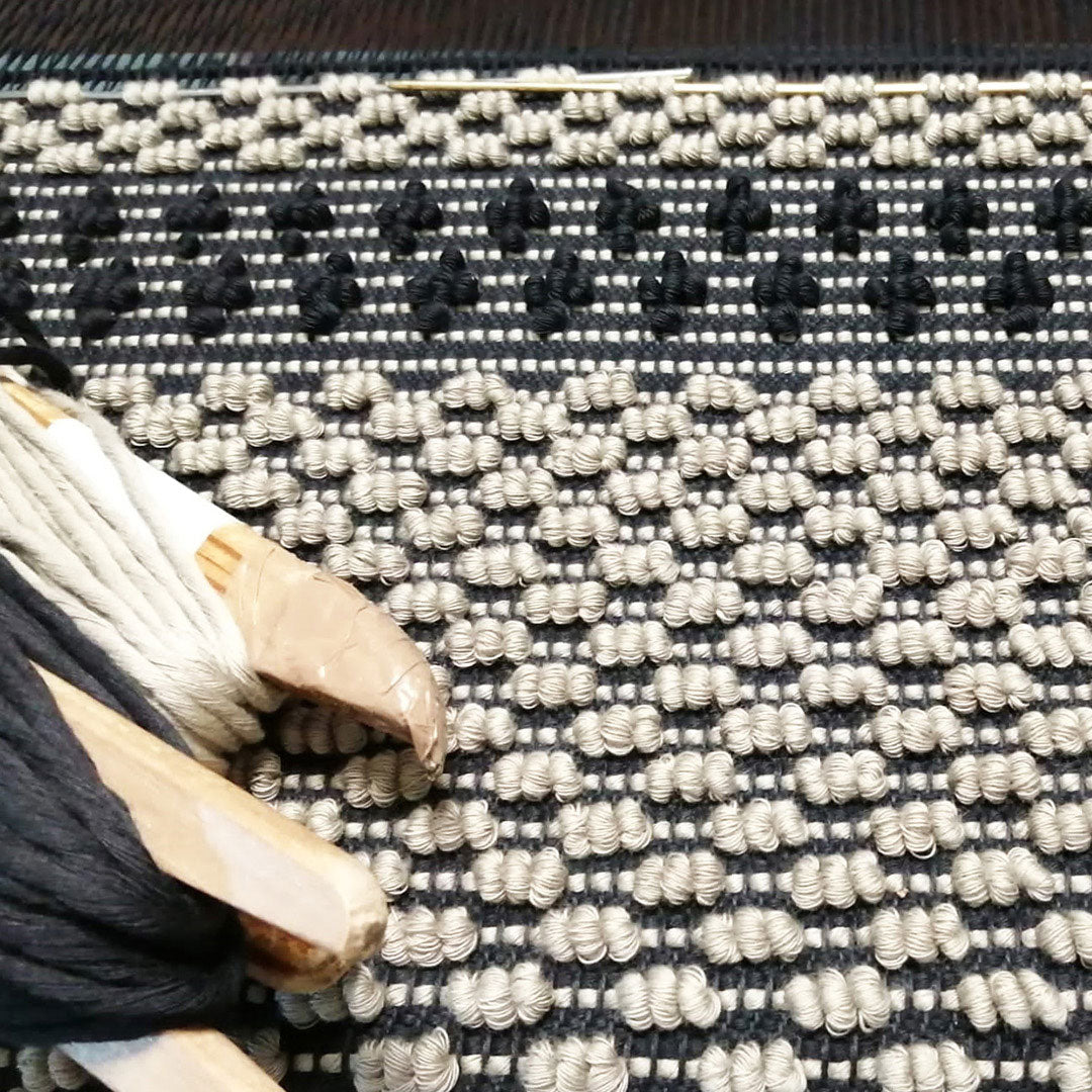 一部の工程に機械を導入しながらも、環境に負担の少ない伝統的なものづくりを保持しています。▲機械織でつくられたANTOTE定番の柄「GANZOS」のクッションカバー