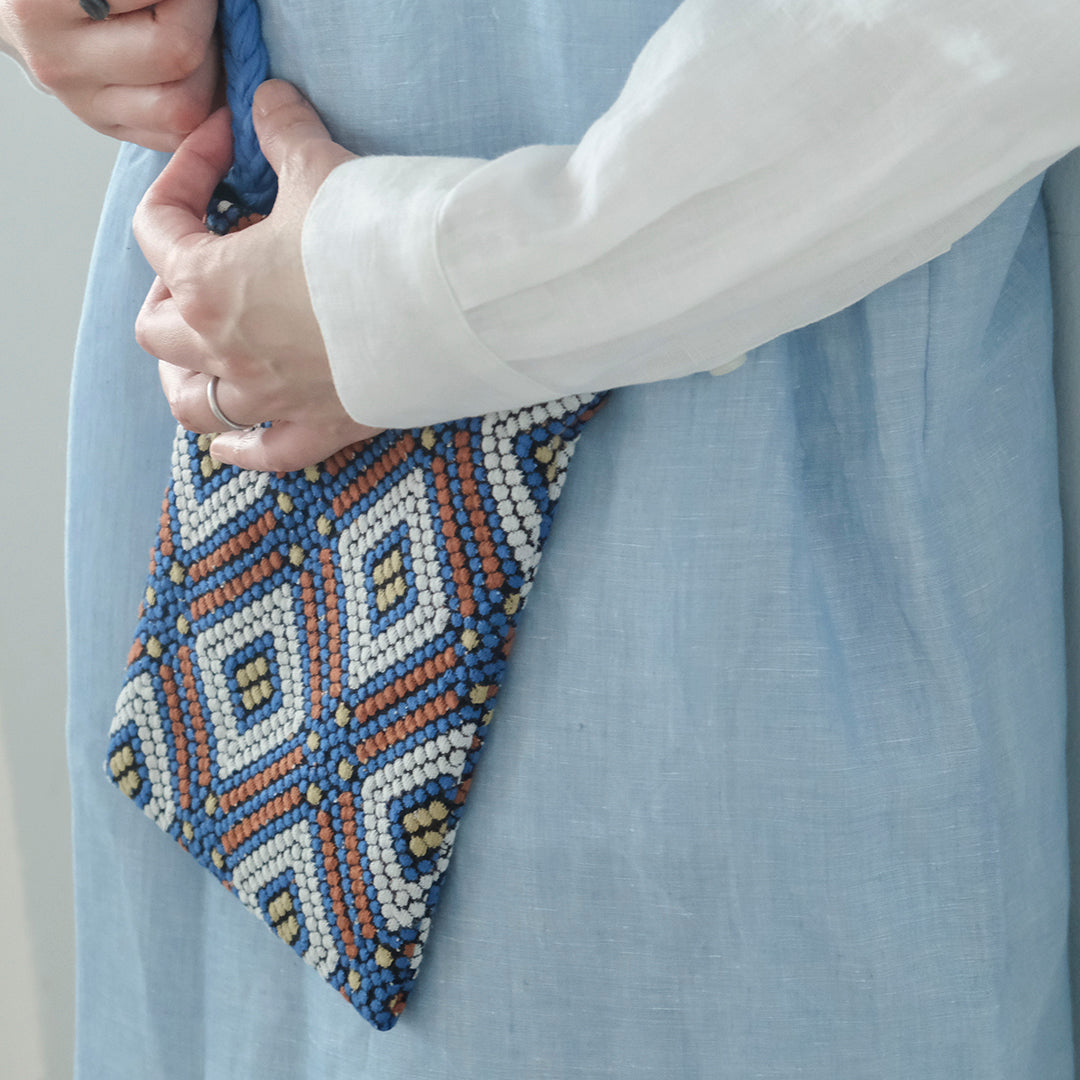 春先の気分をあげてくれるようなマルチカラーの爽やかな配色。ヴィヴィットな色合いですが、大人っぽい雰囲気です。▲プリントでは感じられない、立体感のあるぽこぽことした質感が特徴