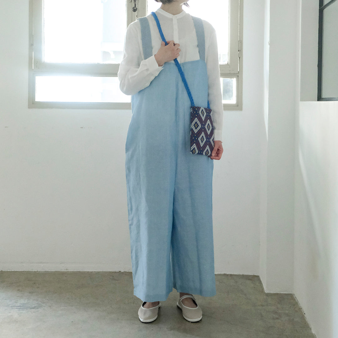 ▲爽やかな青と合わせてリゾート風に着こなしても/オーバオール:[BUNON]Embroidery Overalls