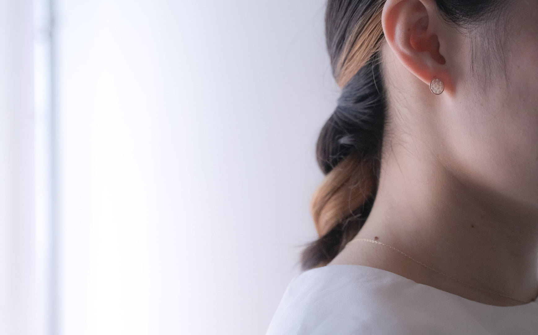 光によって、さまざまな輝きをみせてくれるこのピアス。目に入るたびに、身に着けていることがうれしくなる美しさがあります。