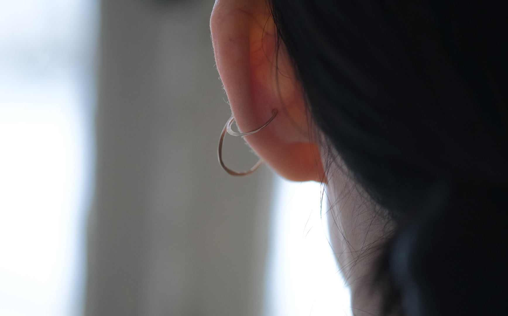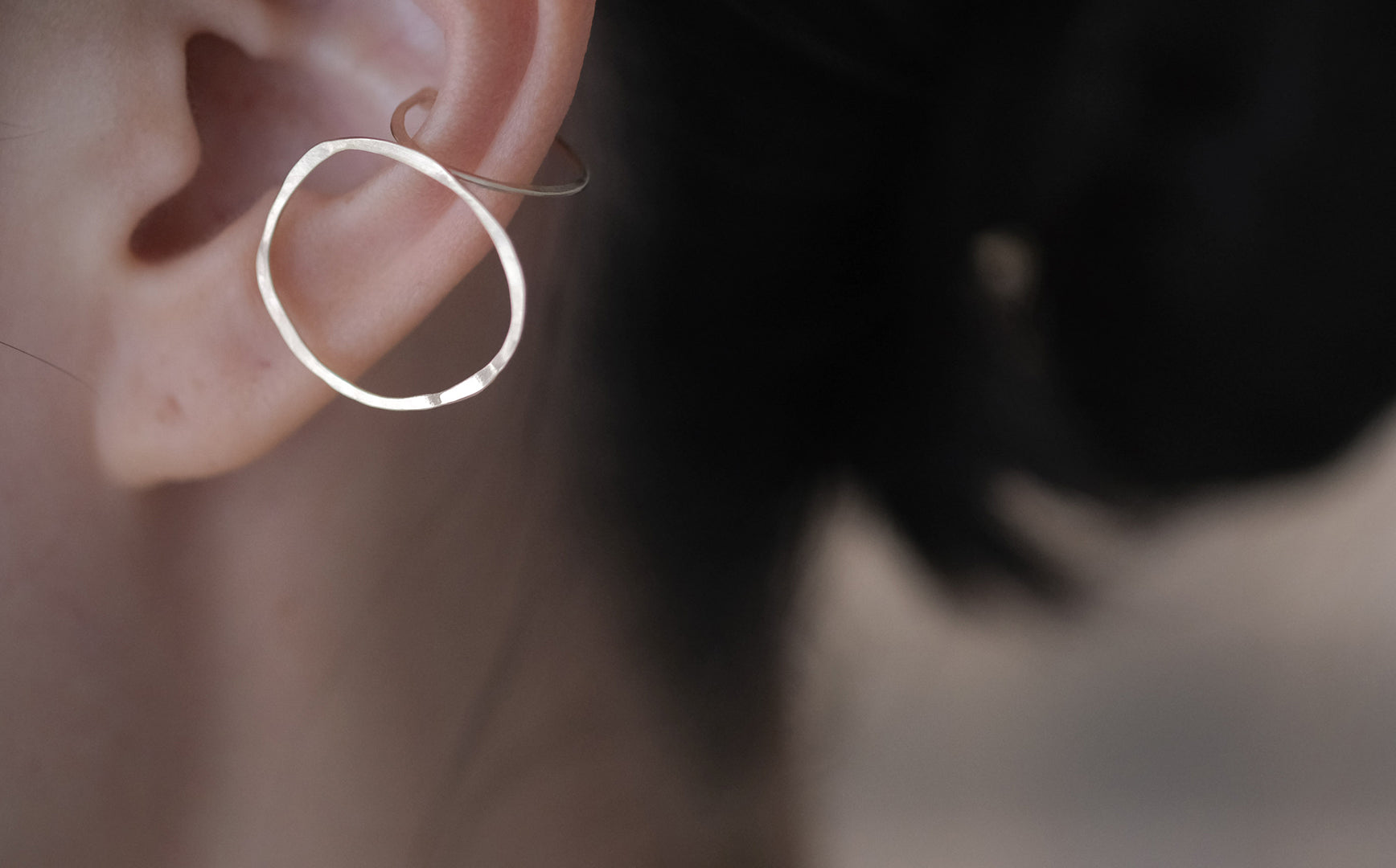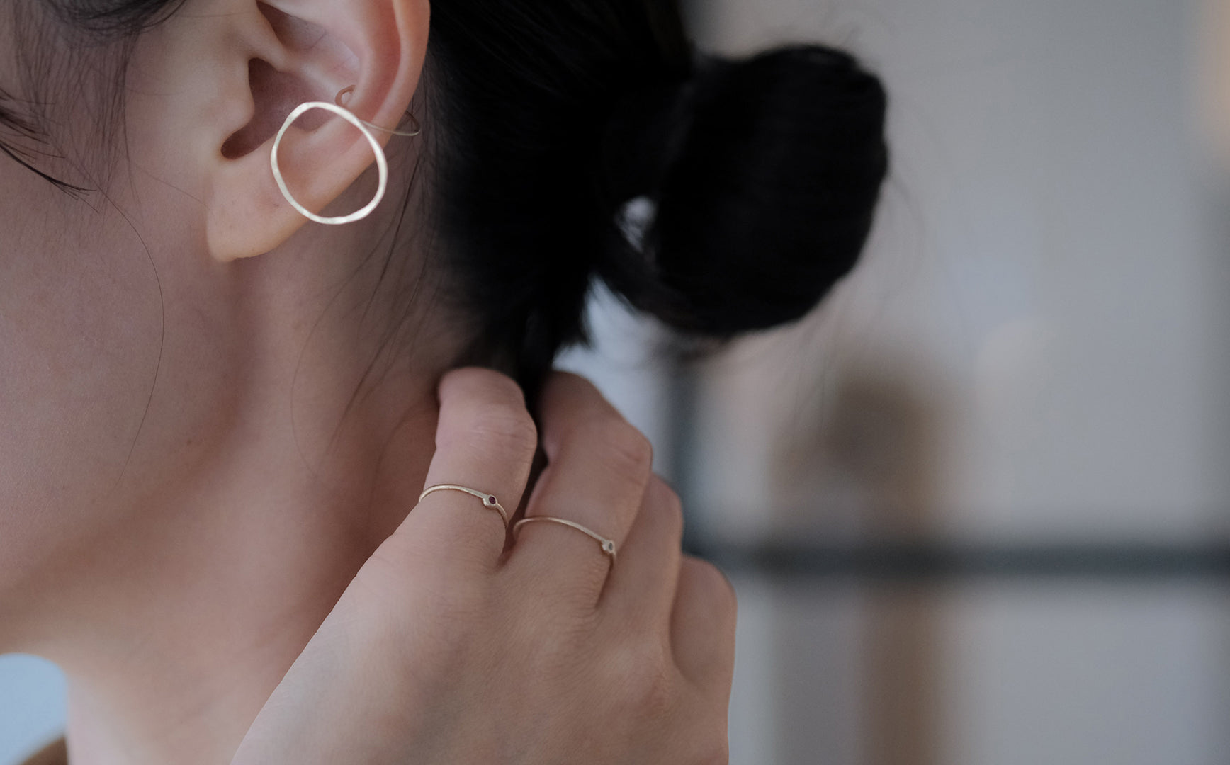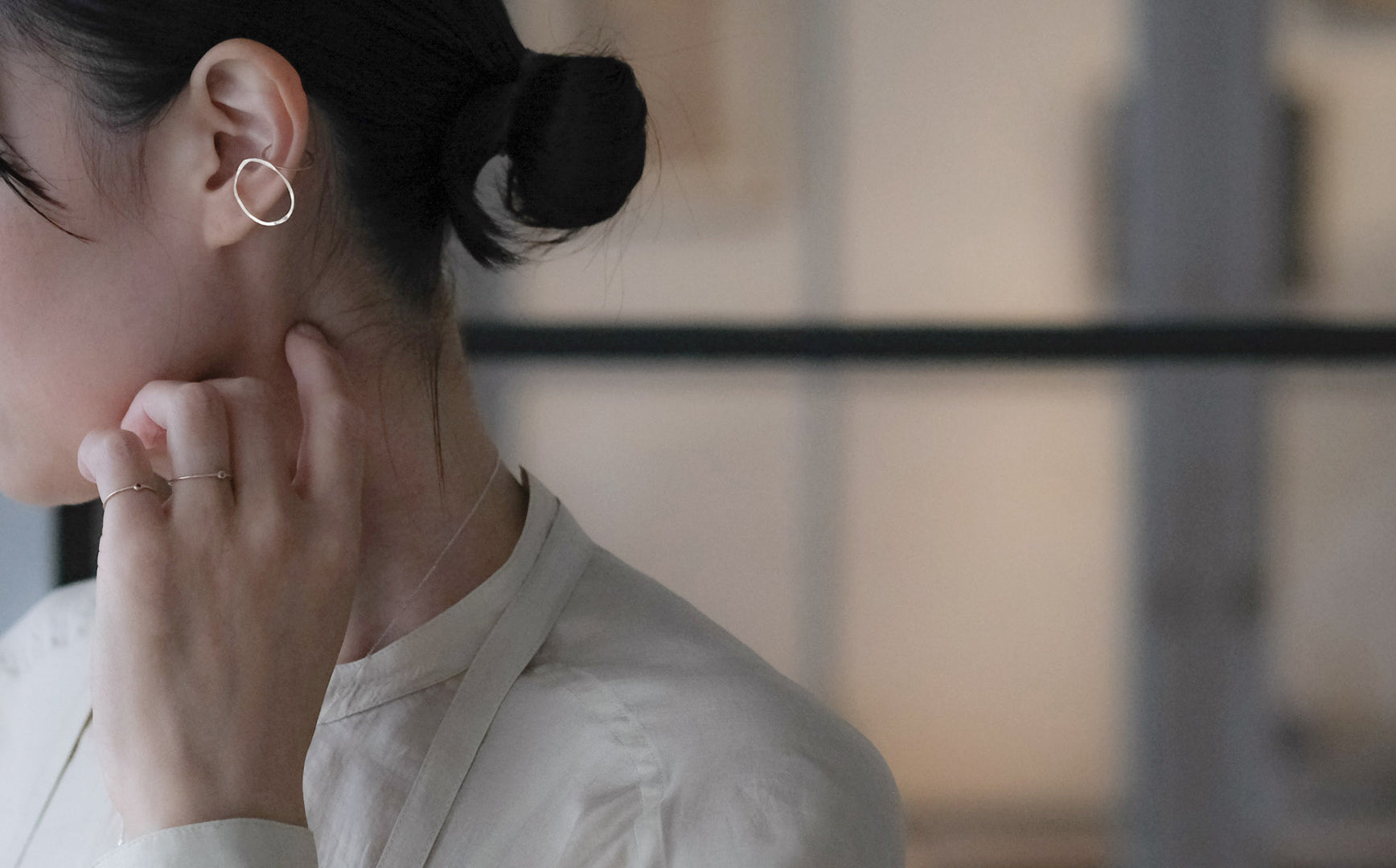 神戸のAtelier elにお邪魔した際、つくり手の岡本さんが身につけた姿がとても素敵で、ぜひご紹介したい!と思ったのがRippleシリーズのイヤーカフ。