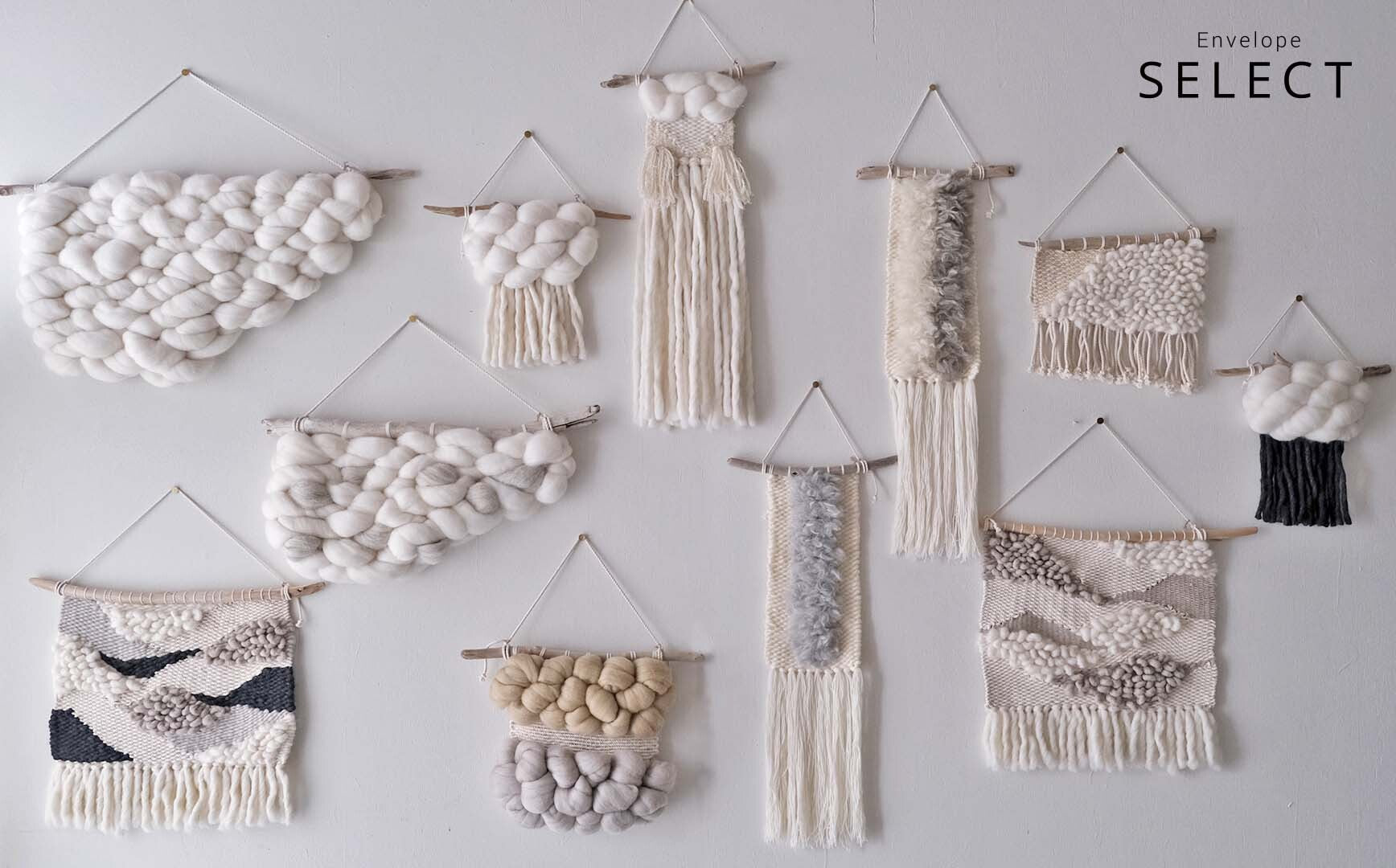 何気ない白壁に豊かな表情をつくり、ふと目に入れば心がほぐれるような柔らかなタペストリー。どんなインテリアにもなじみやすいよう、優しい色味を基調につくられています。