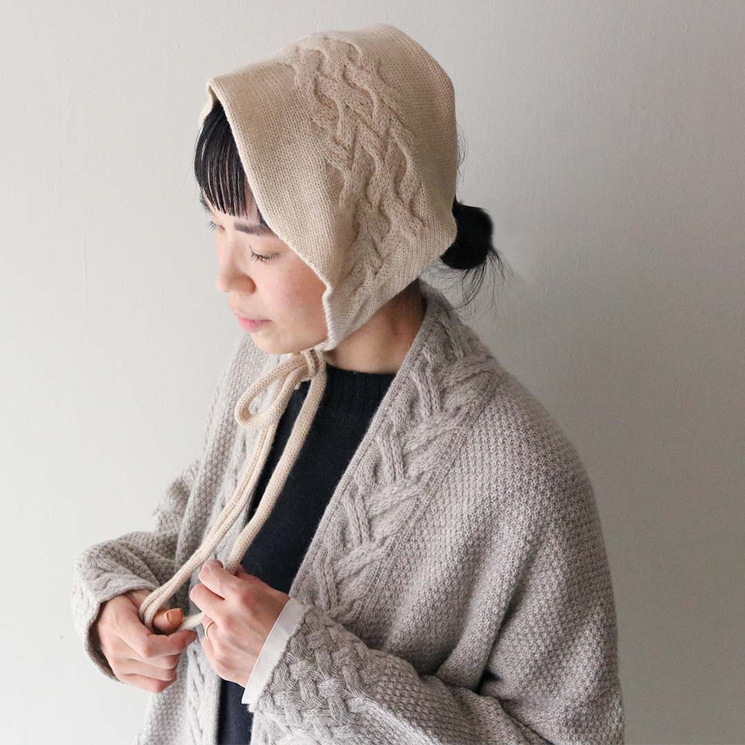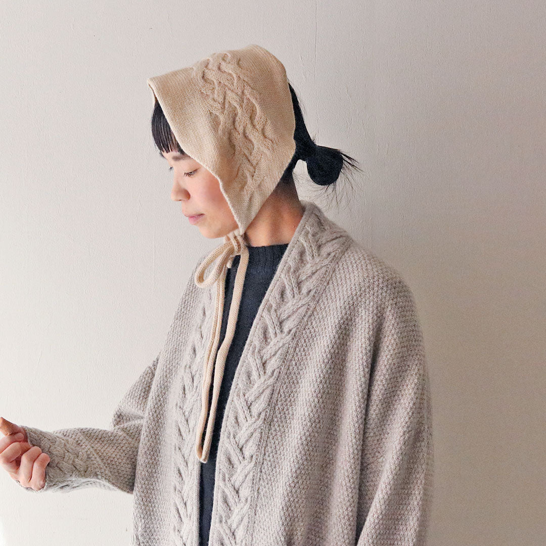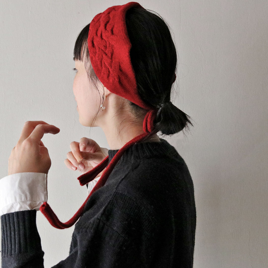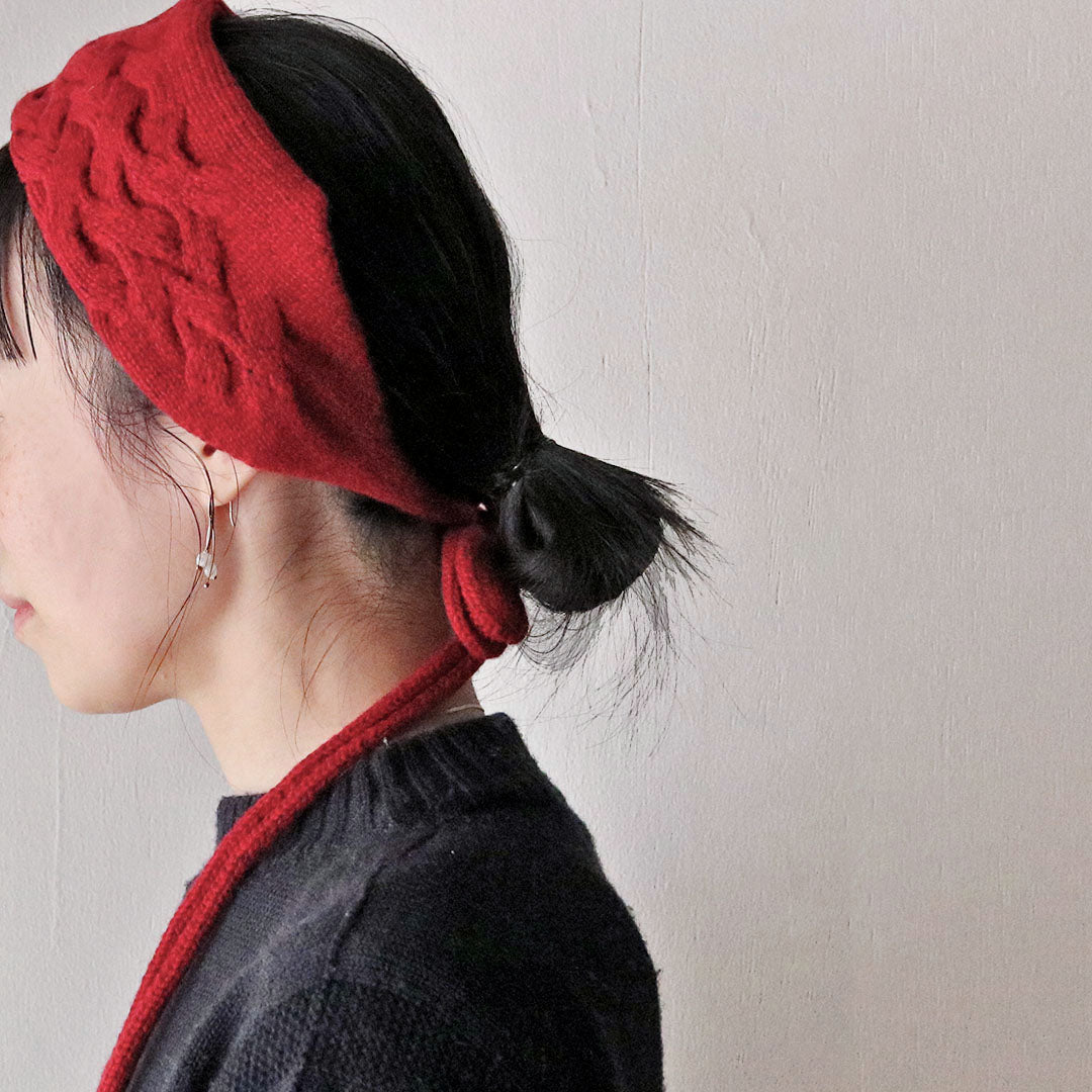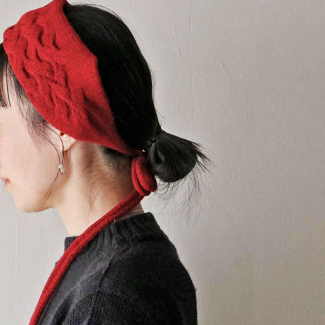 立体的なケーブル模様はオリジナルのデザイン。プレーンな編地からつながるような編み模様なので浮くことなくヘアに馴染みます。秋冬の装いに映えるニットのアクセサリー。遊び心あるデザインをいつものコーディネートにプラスして、この時季ならではの雰囲気を楽しんでください。