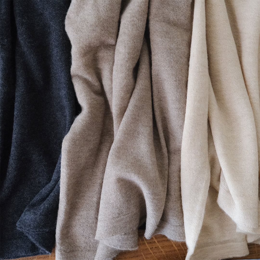 チャコールは染色していますが、カシミヤへの負担が最小限に抑えられるよう原毛の段階で染色をしています。