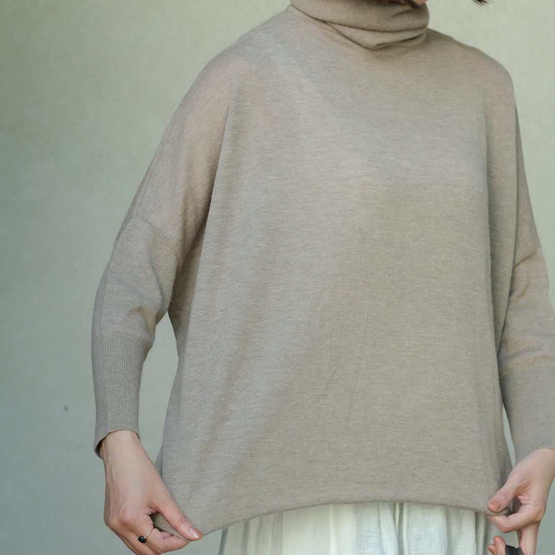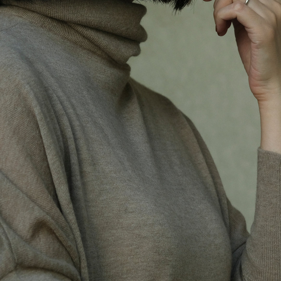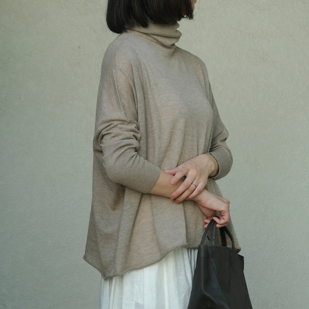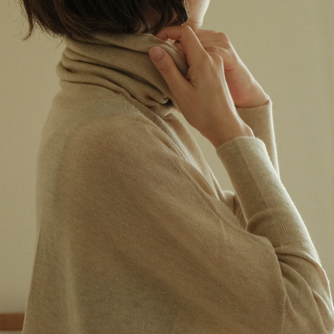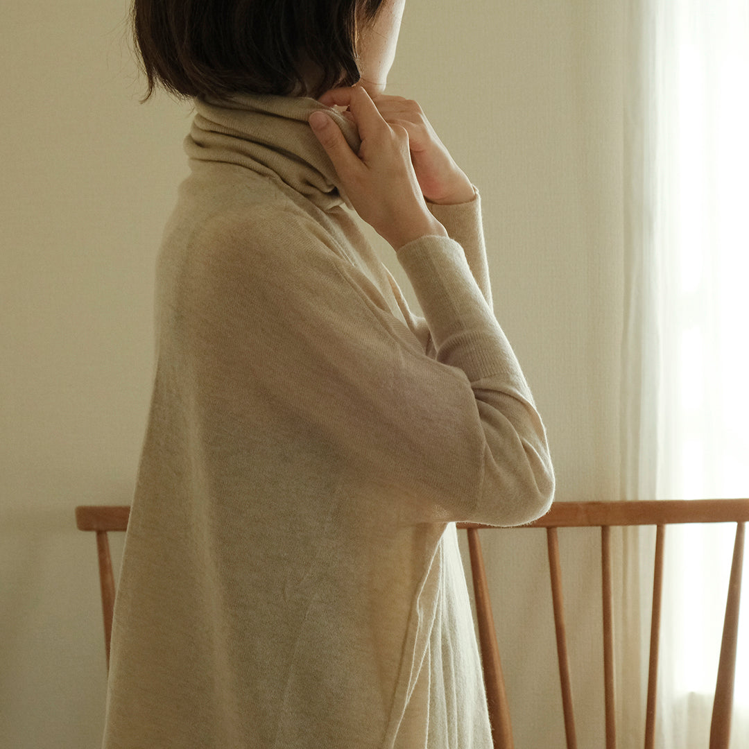 ゆったりとした身幅がふわっと寄り添う、なんとも心地よいタートルニット。