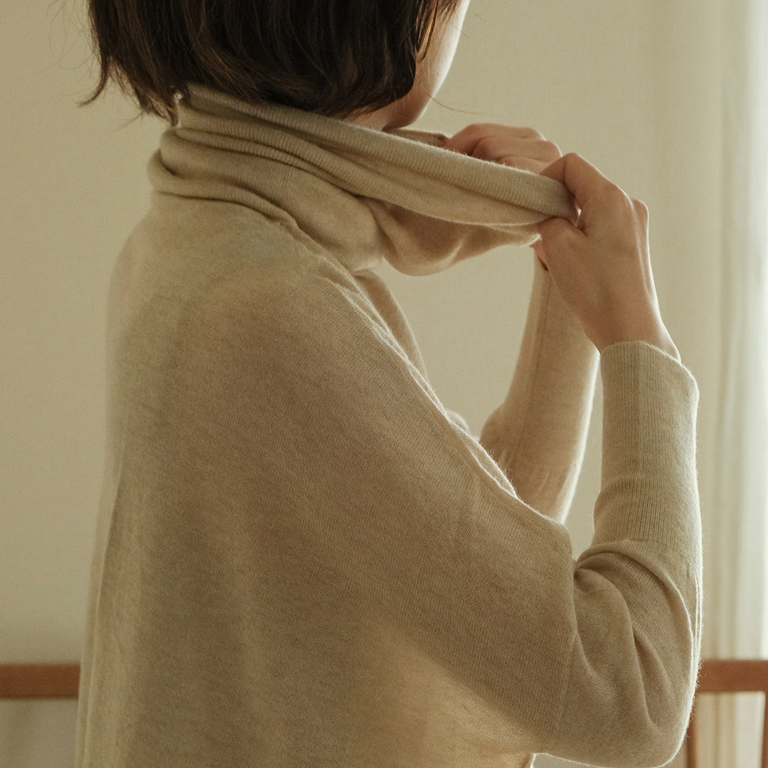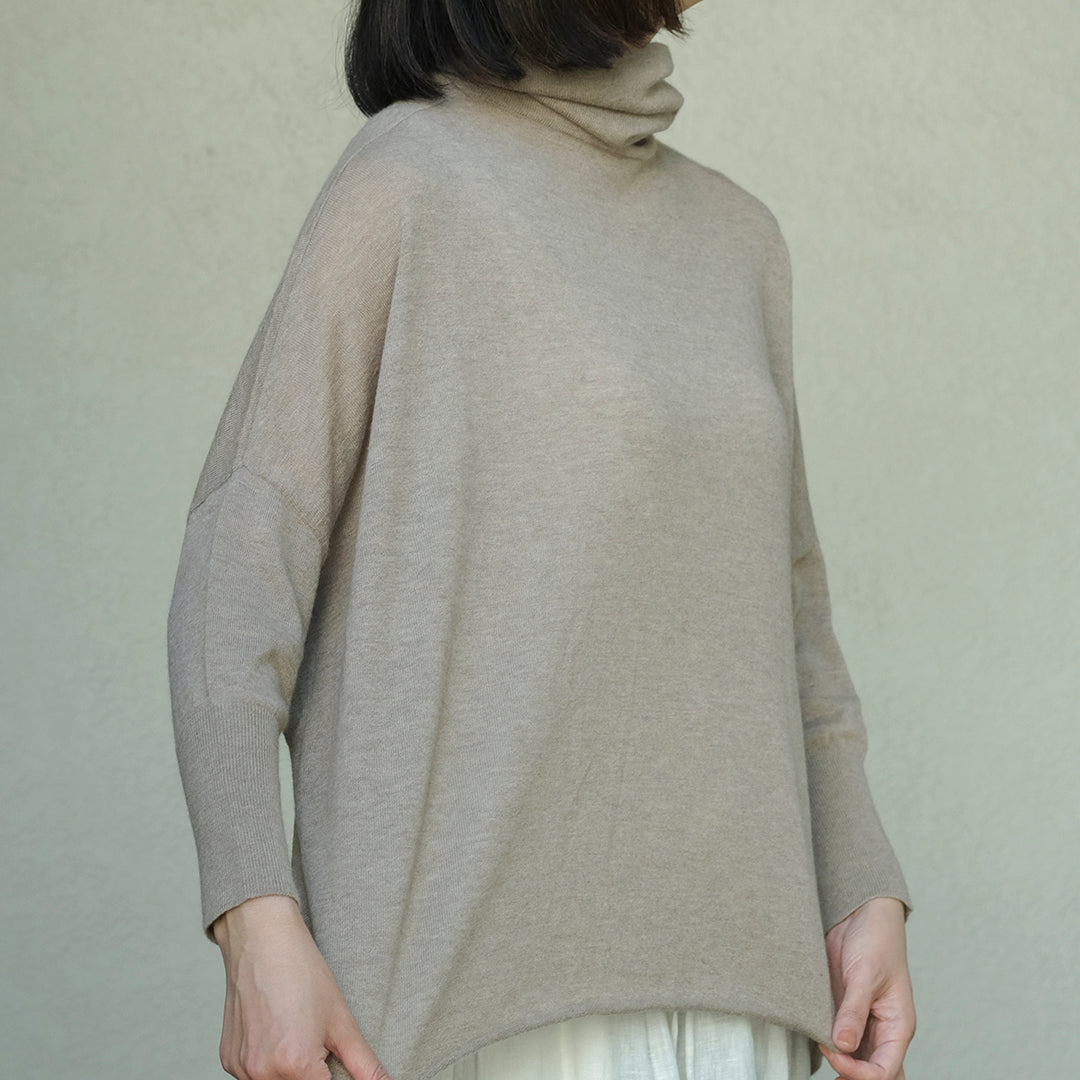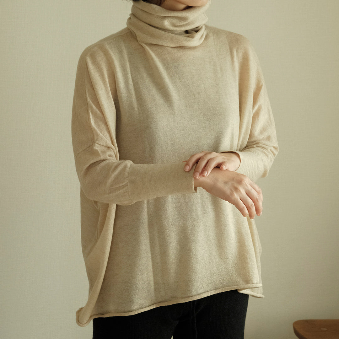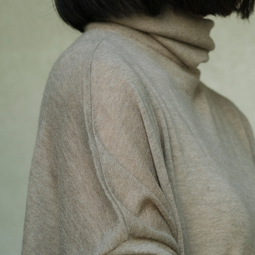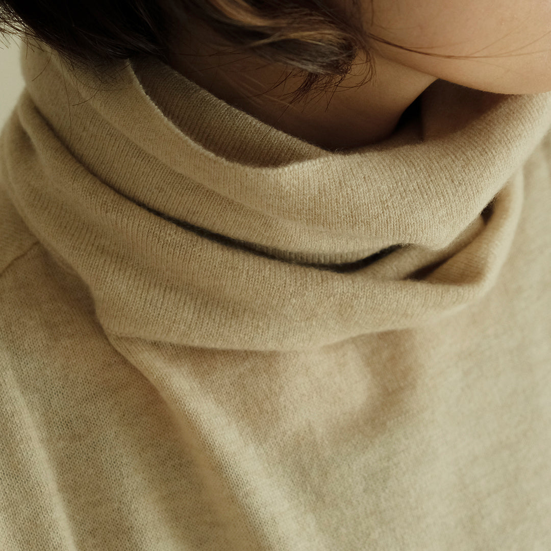 ゆったりとした身幅がふわっと寄り添う、なんとも心地よいタートルニット。
