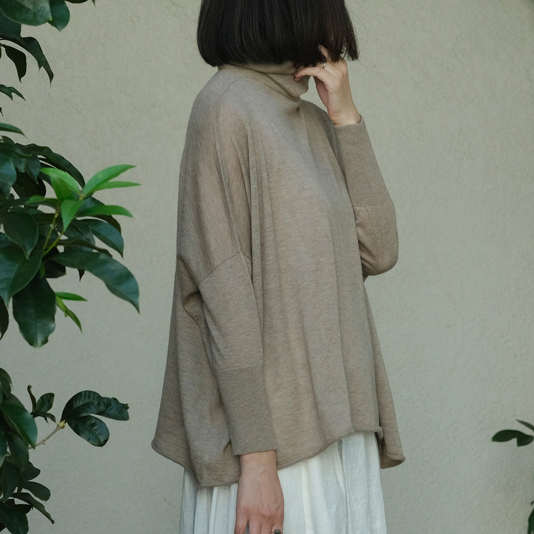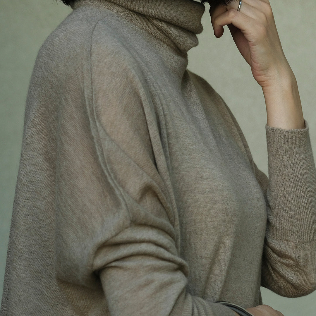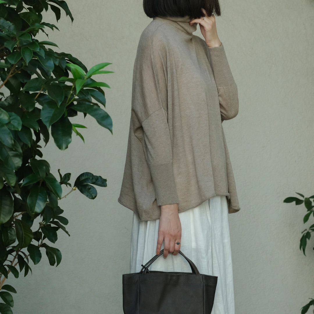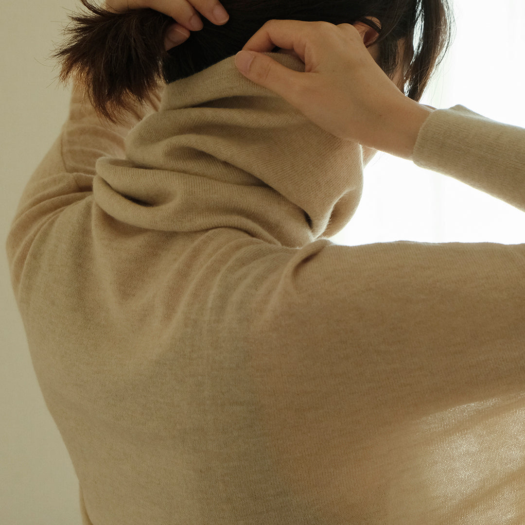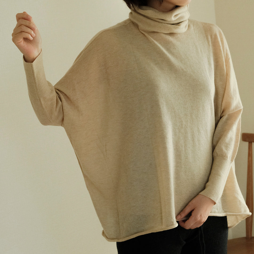 ゆったりとした身幅がふわっと寄り添う、なんとも心地よいタートルニット。