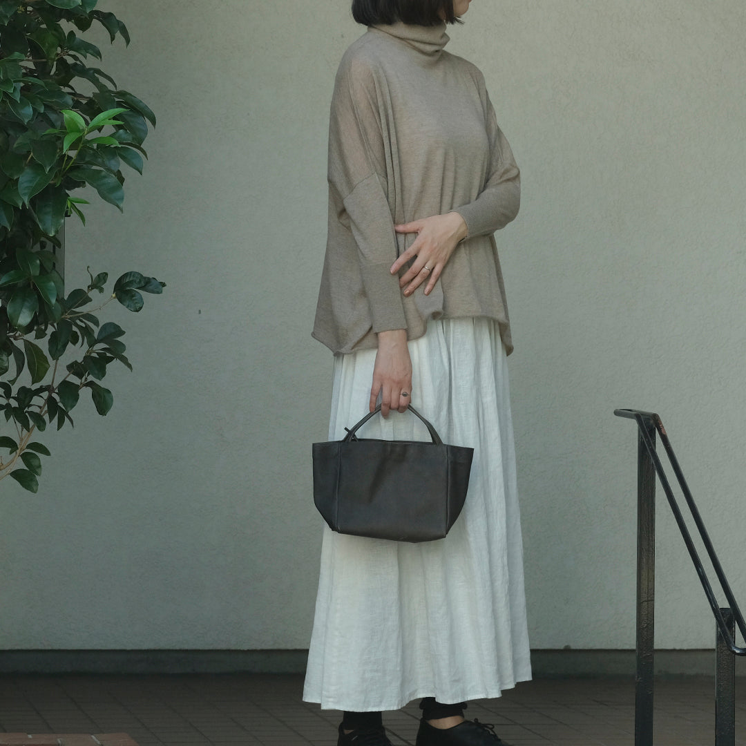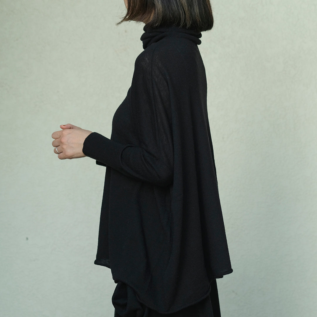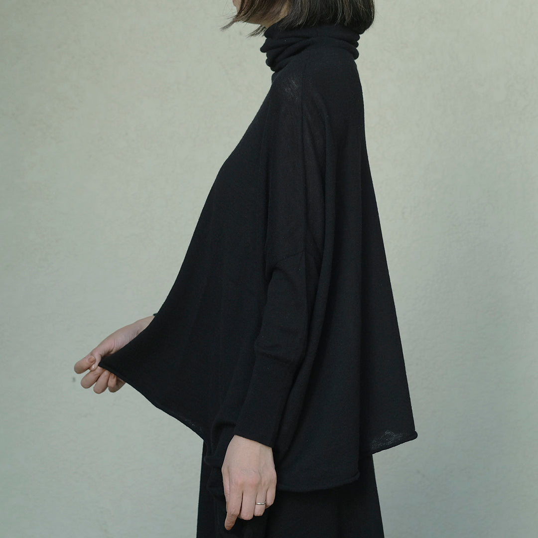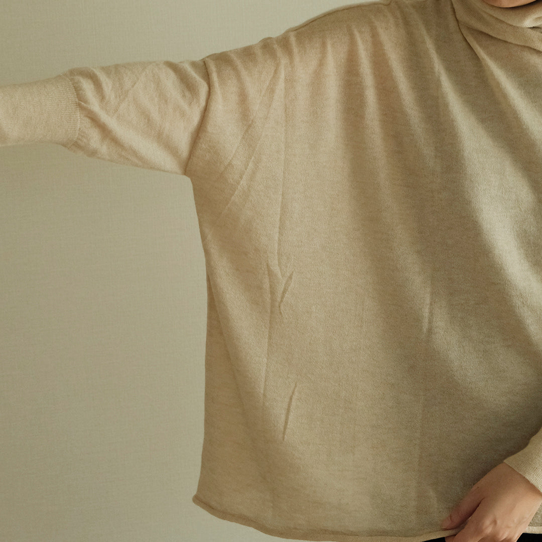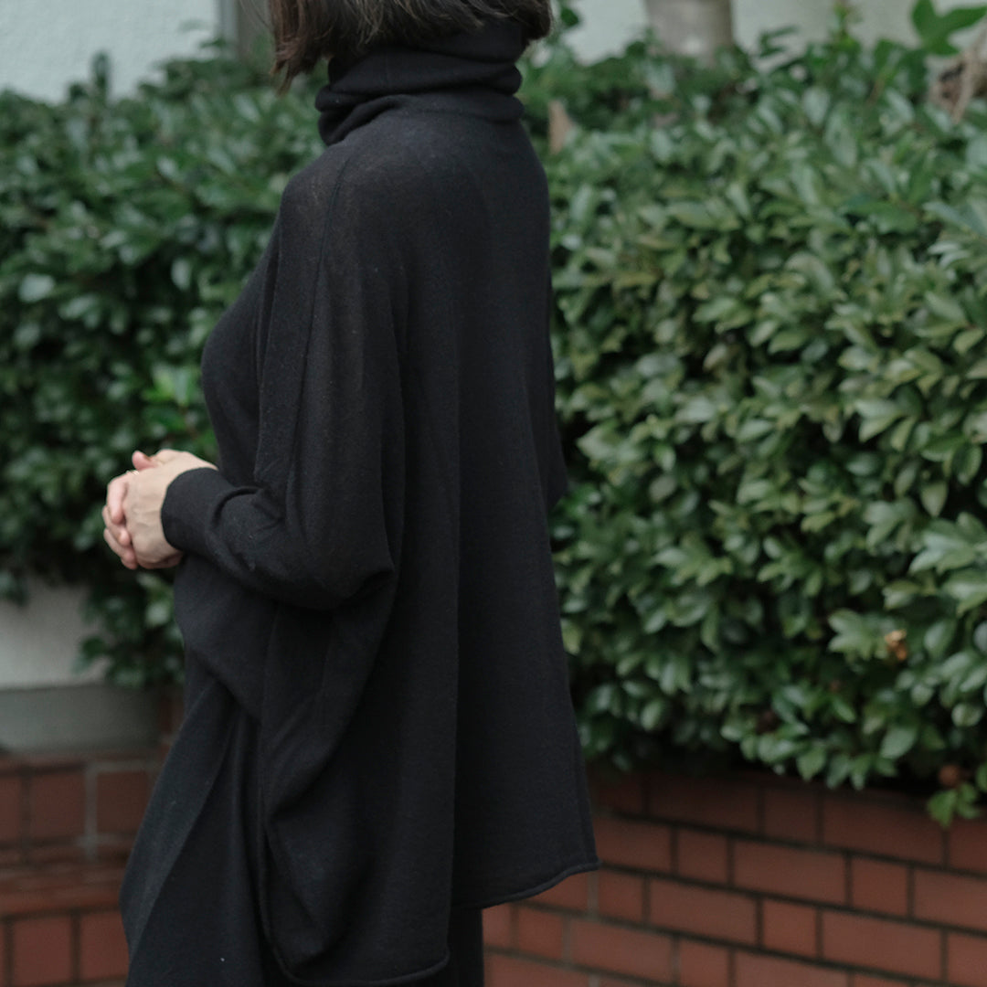ゆったりとした身幅がふわっと寄り添う、なんとも心地よいタートルニット。