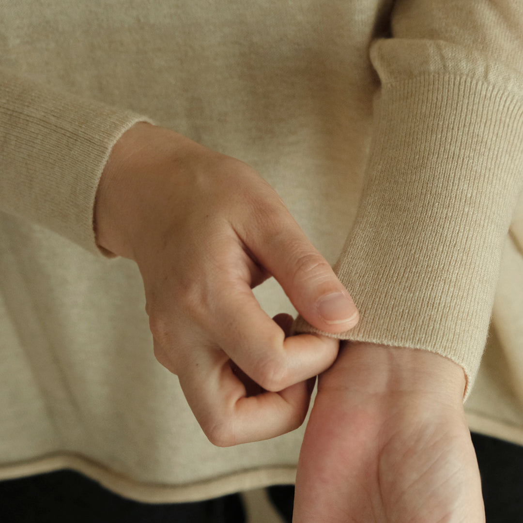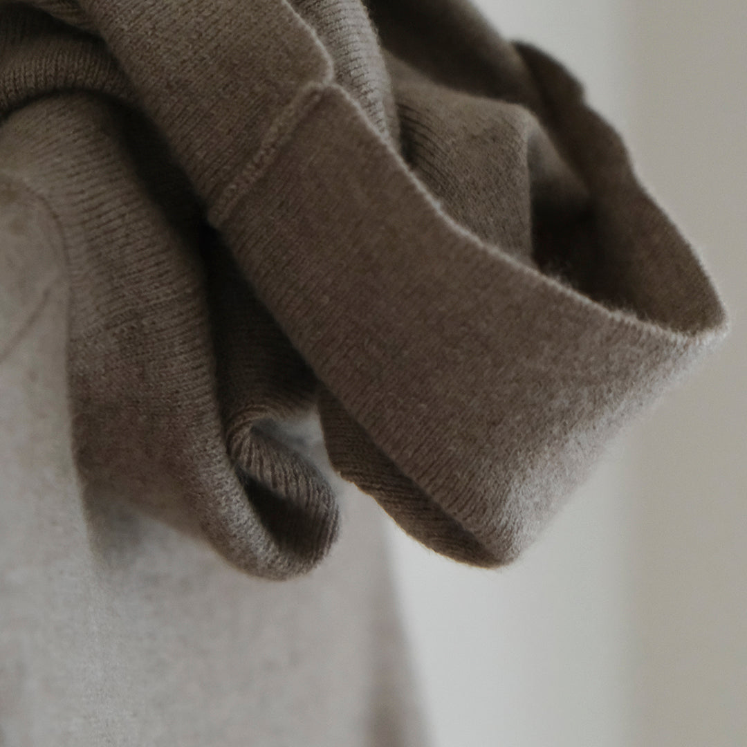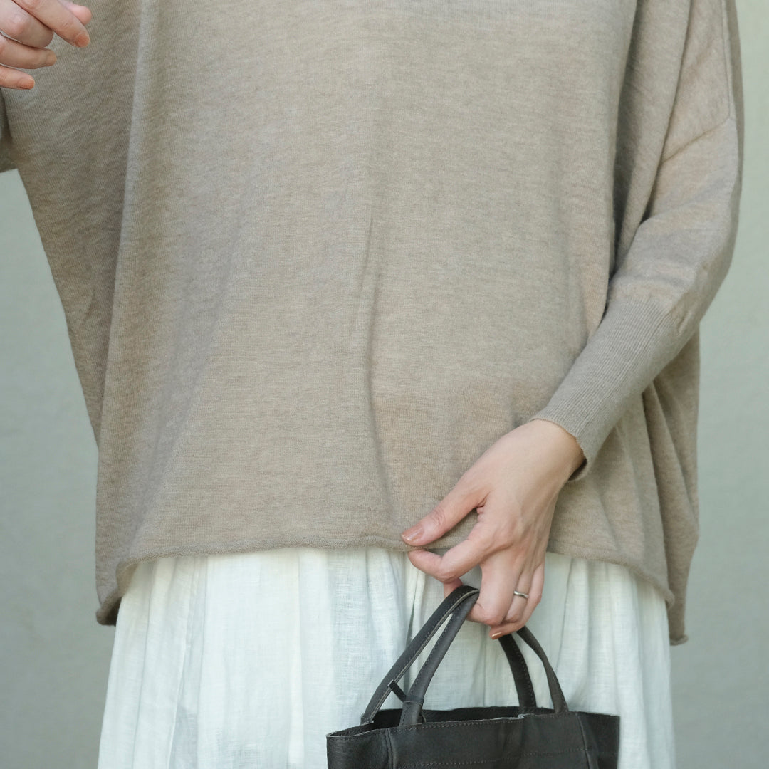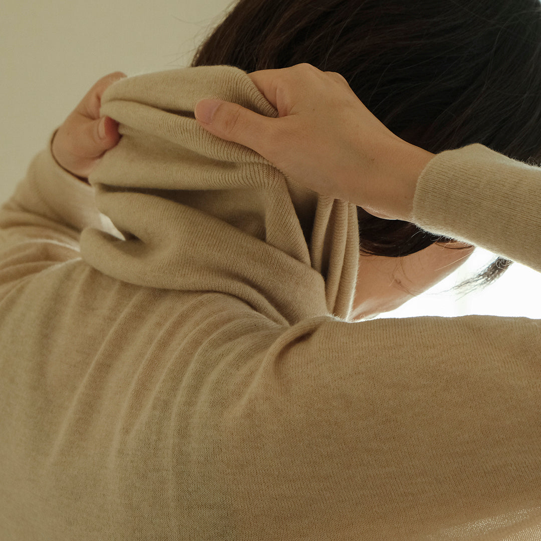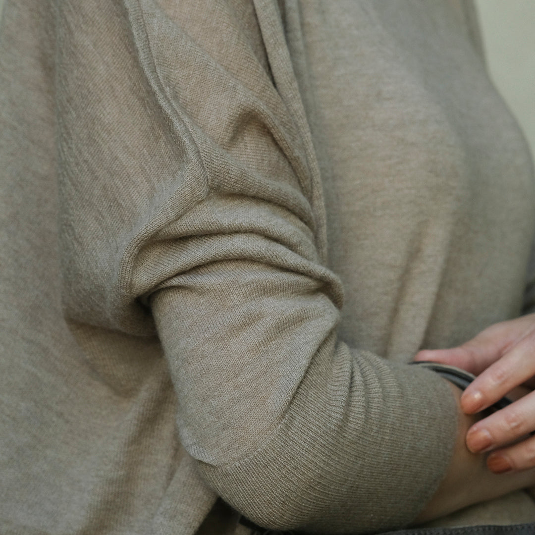 なめらかな落ち感にカシミヤの控えめな光沢感が美しいニット。