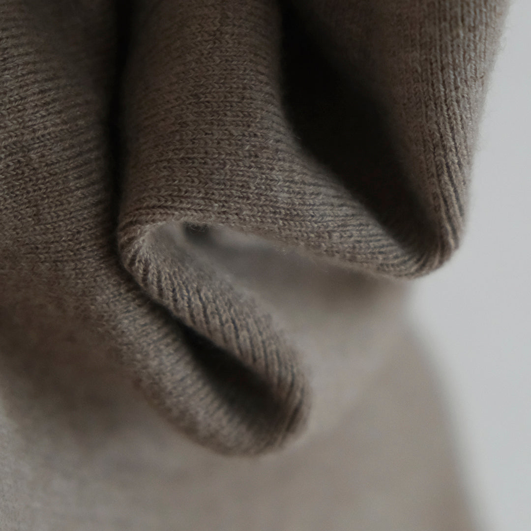 染色していないカシミヤはロウカシミヤと呼ばれ、染色では再現できない、奥深い雰囲気のある色味が特徴です。