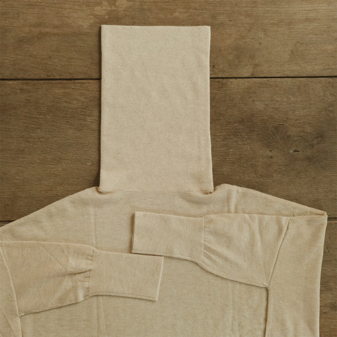 ハイネック部分はこんなにたっぷり。着てみると違和感なく馴染んで、少し首が長く見える不思議なデザイン。