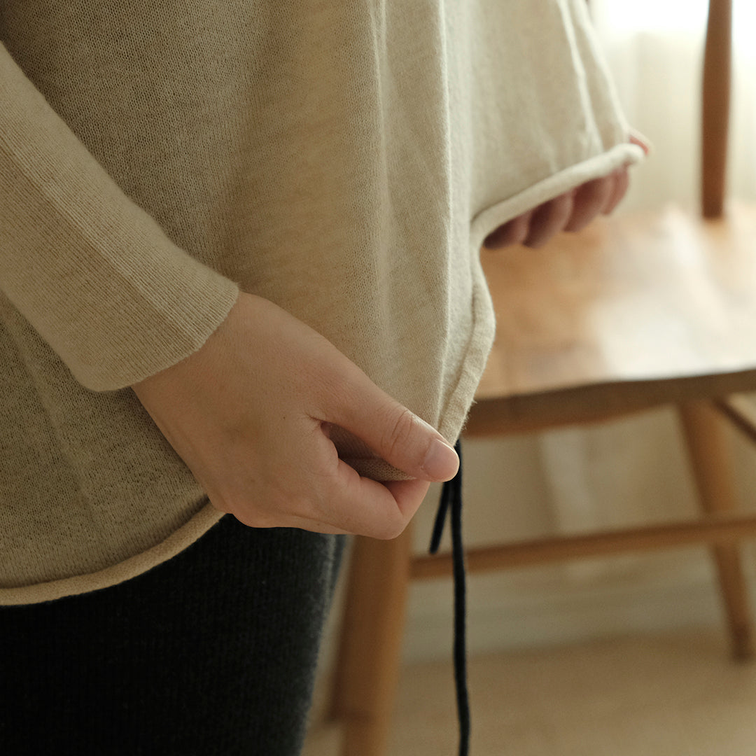 とろけるような着心地の秘密は、インナー用に紡績した極細の糸を使用しているから。素肌に着られるので、春先までふわっとリラクシーな着こなしが楽しめます。