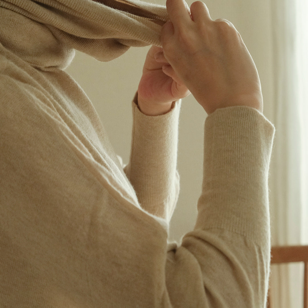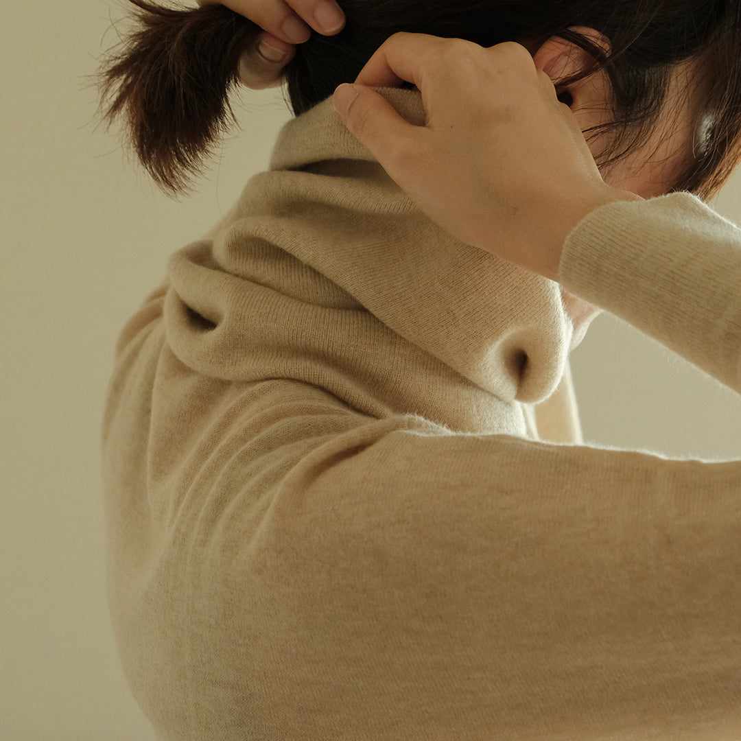 崩れてほしくないタートル部分はしっかりと、どんな人でも首元のシルエットが美しく見えるようにデザインされました。