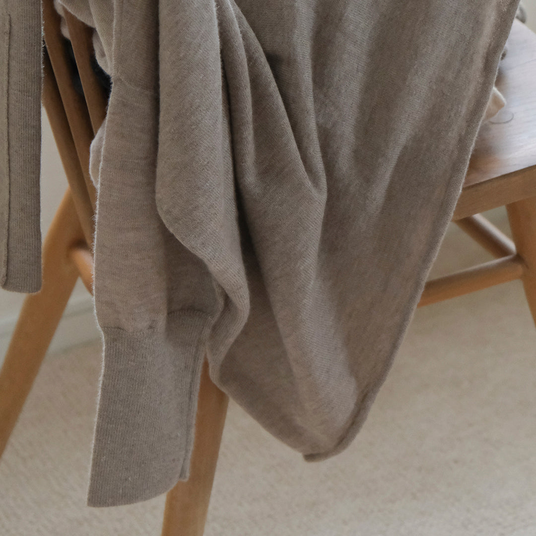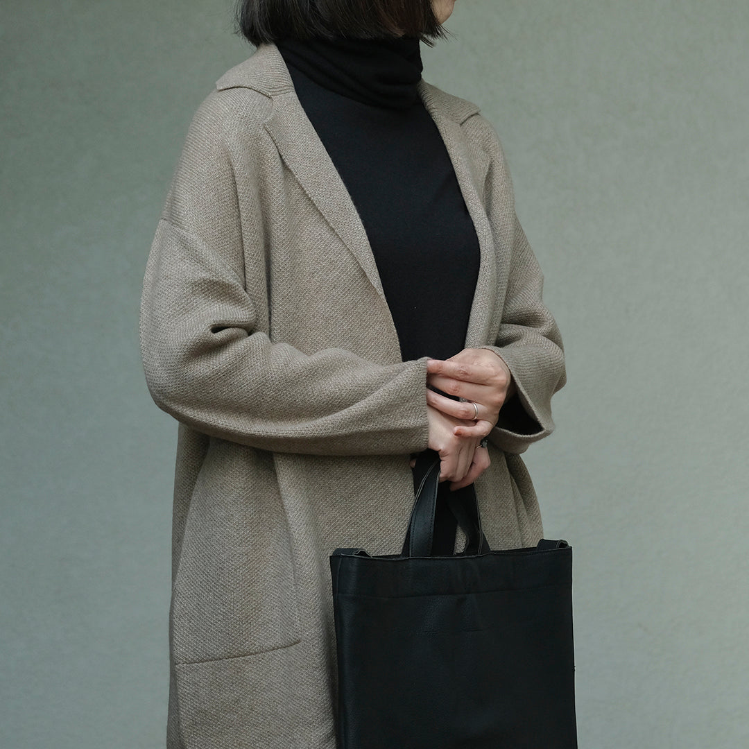 薄手でとてもやわかいので、コートに重ねてもすっきりとした着こなしに。