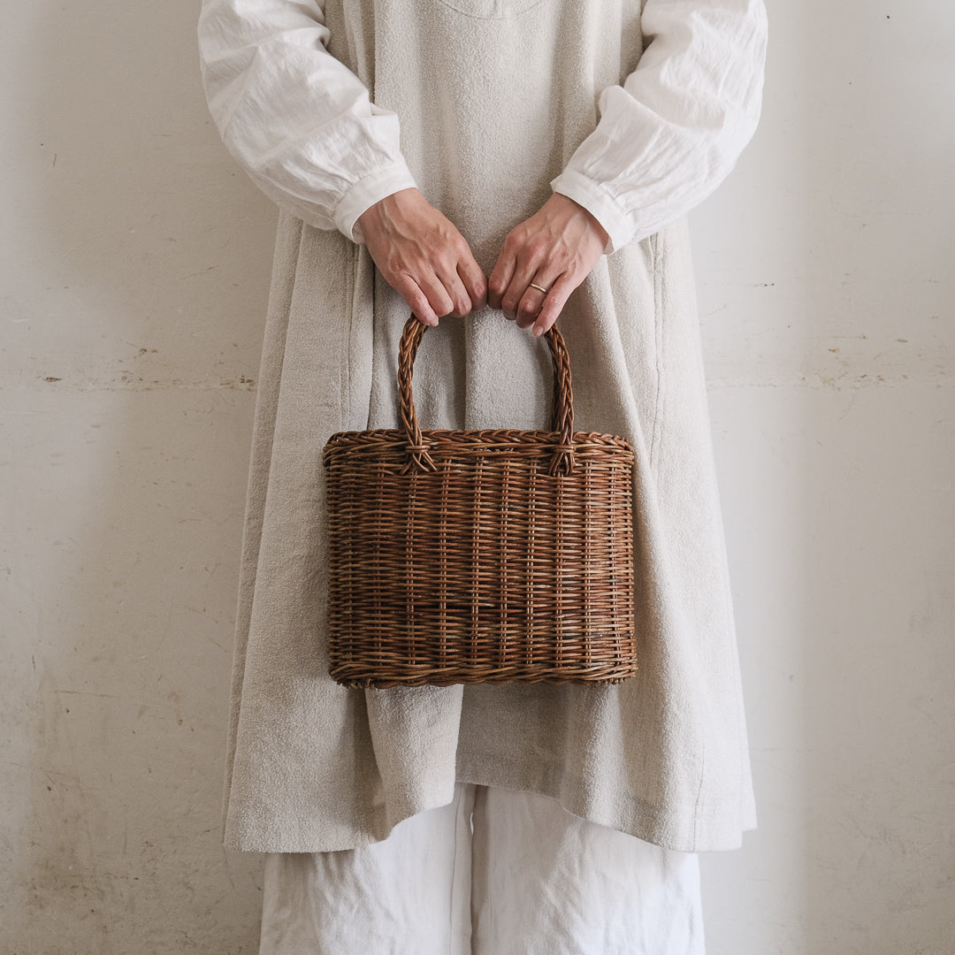小さめサイズですが、必要最低限のものはしっかりと入るのも、嬉しいところ。蓋のないかごなので、お気に入りのアイテムをわざと覗かせて見せたり、好みの柄のハンカチやスカーフを目隠しにする楽しみも味わえます。