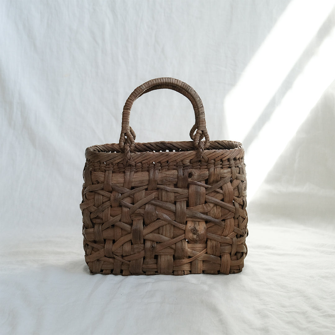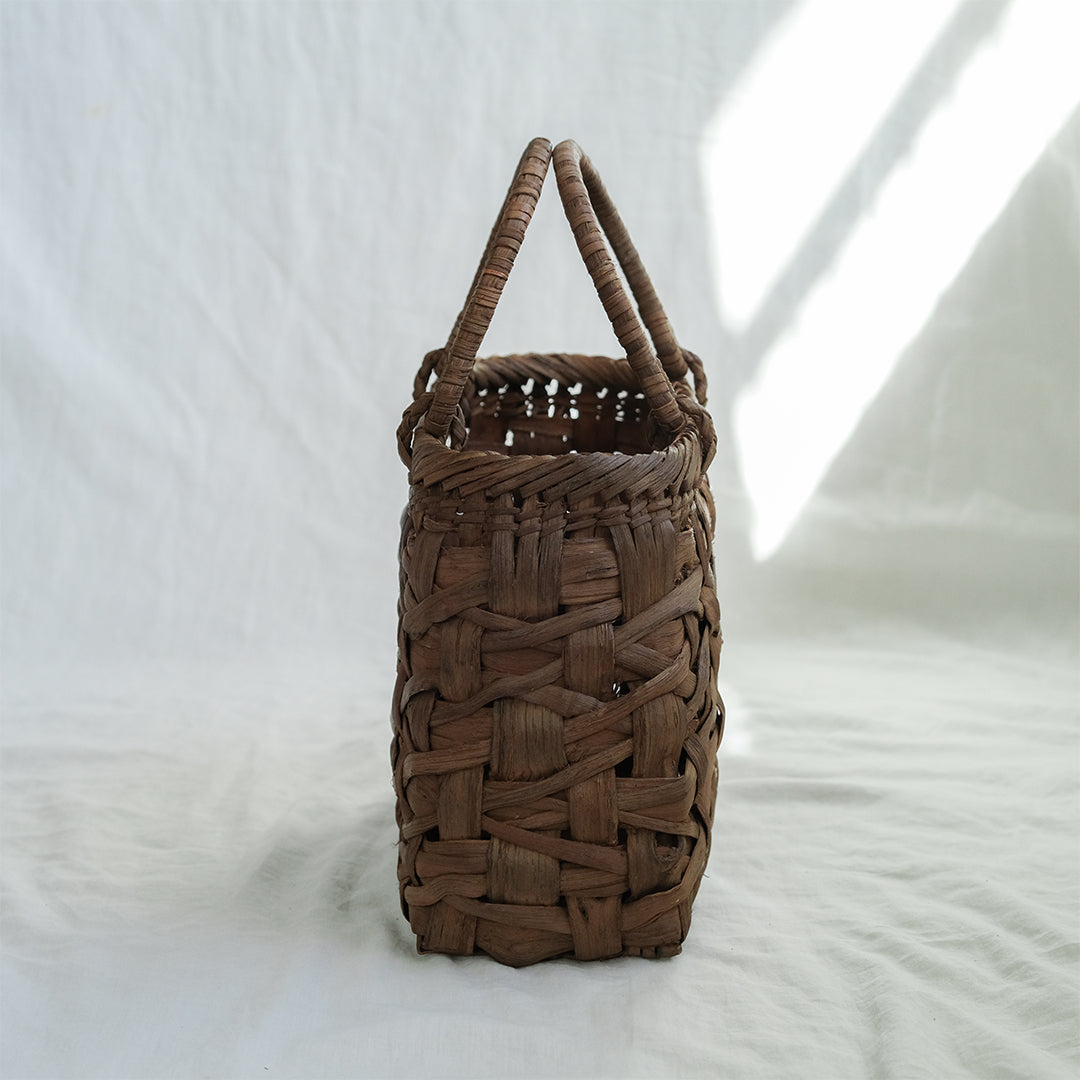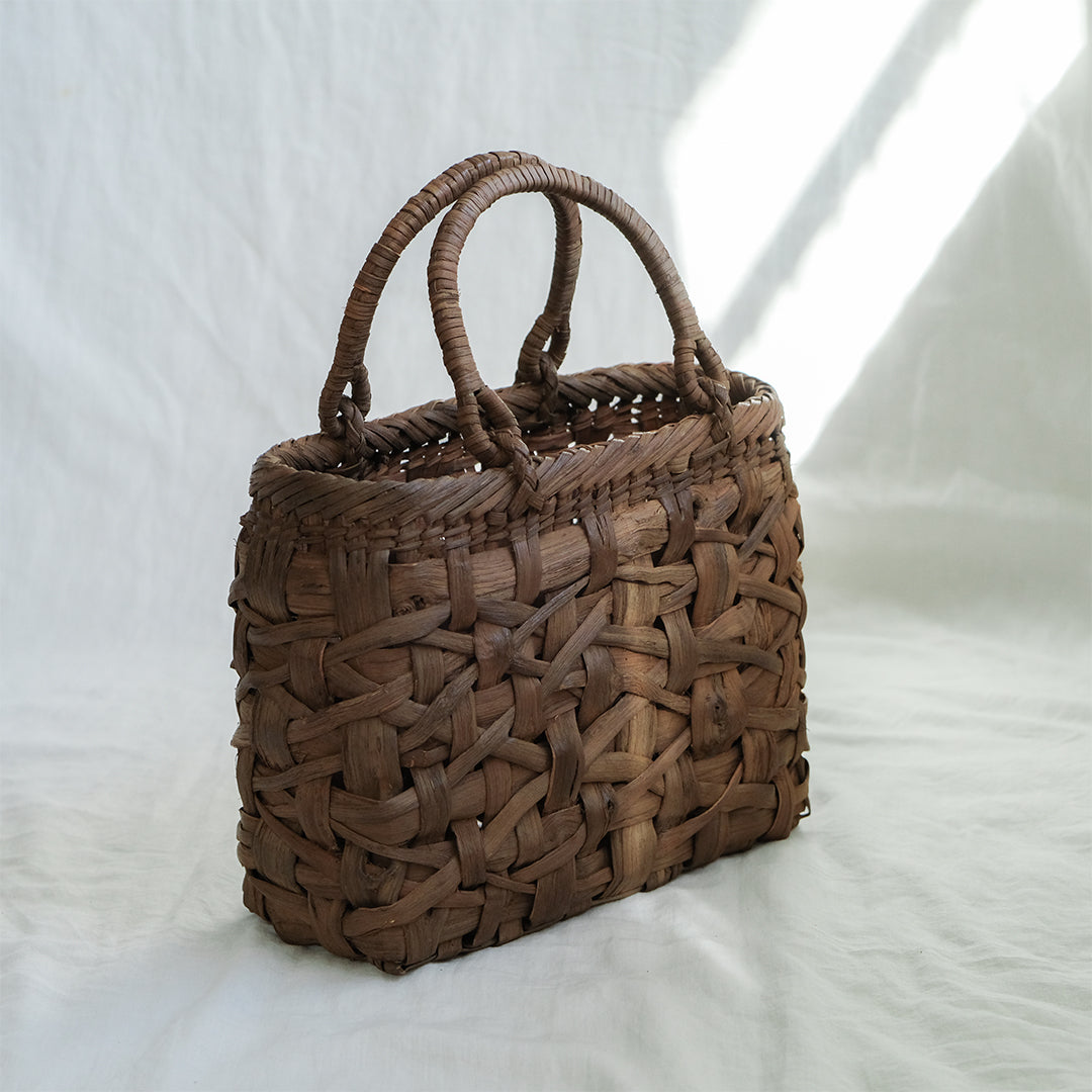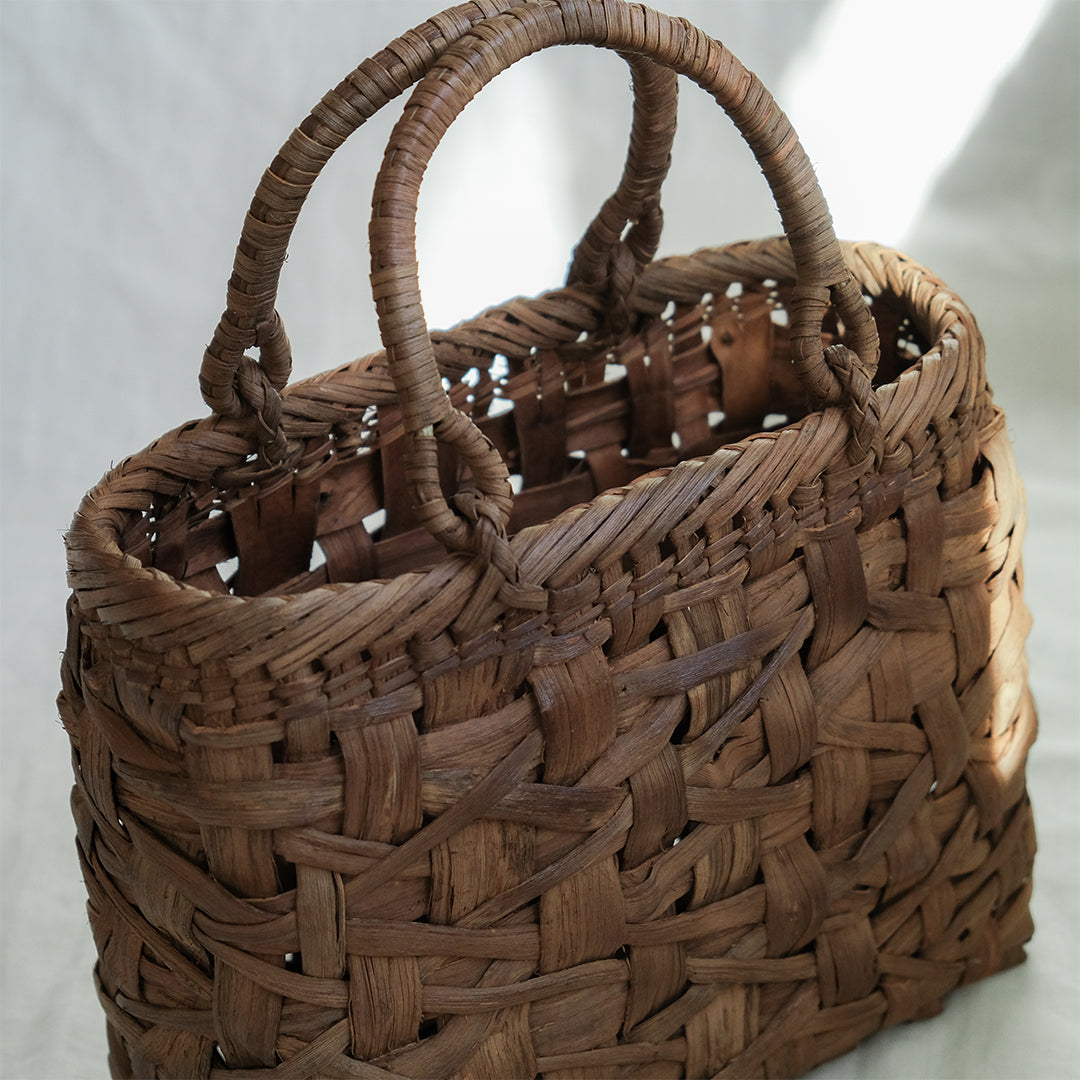 山ぶどうは使い込むほどに味わいが増し、あけびかご以上に濃く、艶のある飴色に変化をしていきます。大切に使うと、何十年でも使える「育てるかご」。